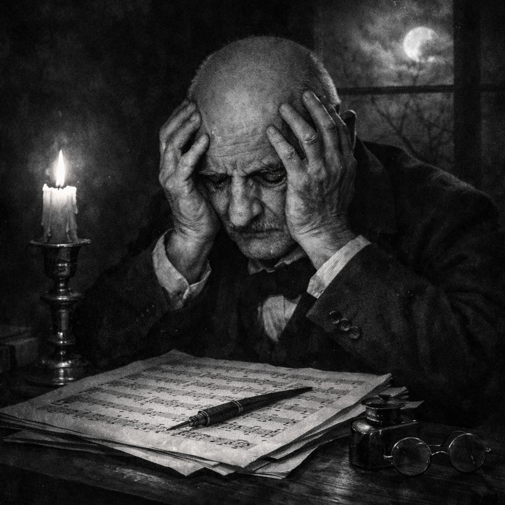 Character: mixture of melancholy, resignation, and serene faith, โpercussion or brass fanfares