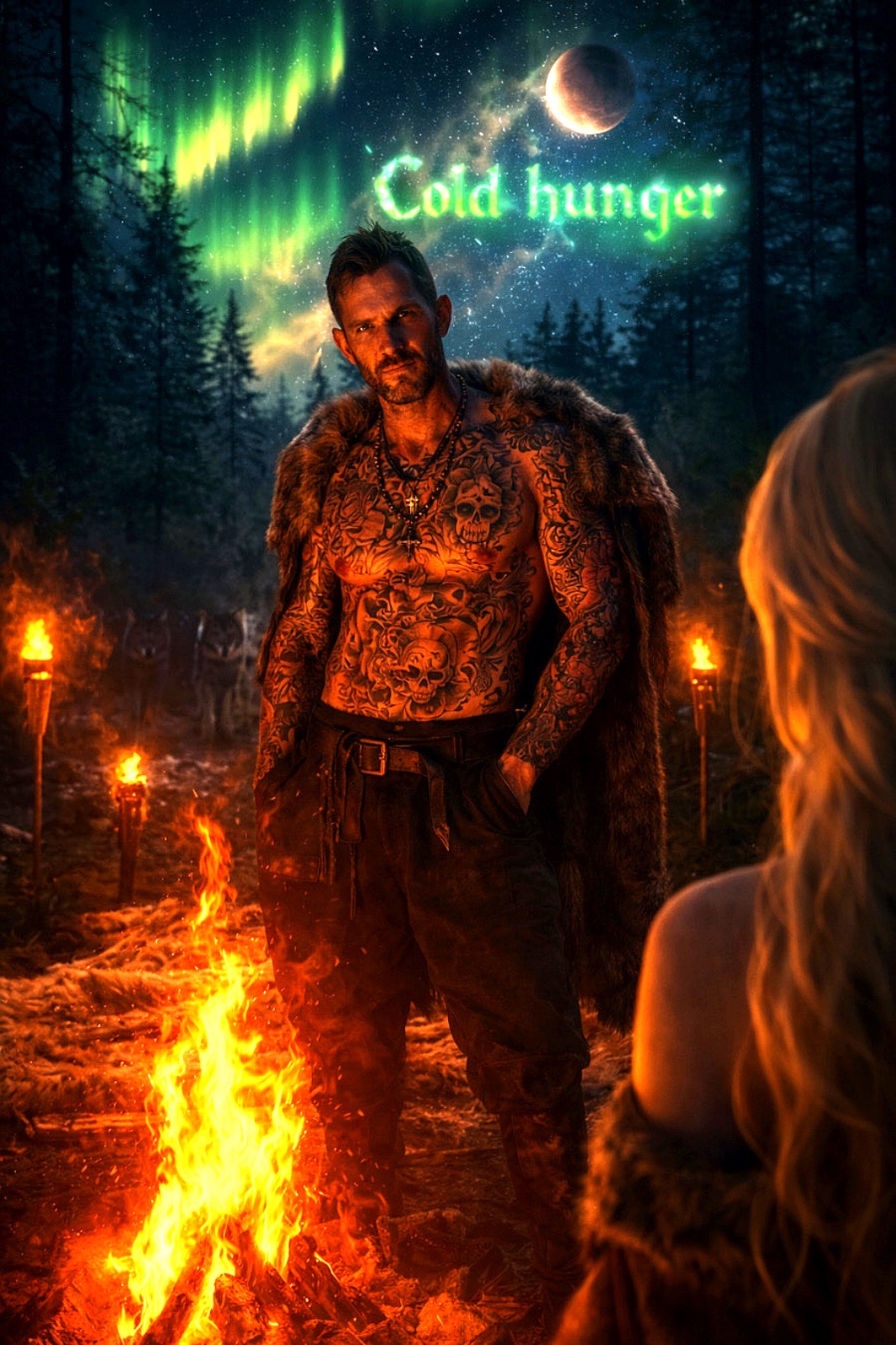Dark Nordic folk infused with cinematic dark pop and primal tribal energy, mid-tempo around 86 BPM, atmospheric, sensual and dangerous, Instrumentation: deep pulsing bass, slow hypnotic drums, subtle tribal percussion, textured electronic elements, restrained distorted guitar textures used for tension, cold ambient pads and wind-like atmospheres, No organ, no traditional strings, Male lead vocals only: low to mid-range baritone, dark, seductive, slightly hoarse and raw, confident and predatory delivery, Intimate close-mic vocals in verses, controlled and teasing, building into emotionally intense and commanding choruses, Use reverb and echo for depth, but keep the voice present and dominant, Overall vibe: nocturnal, northern wilderness, erotic tension, danger and longing, Cinematic but restrained, primal without chaos, sensual without sweetness, Build slowly, let tension and atmosphere drive the song rather than melody, ending in a cold, fading, haunting outro