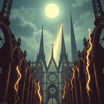 Neon Gothic Noir, Doom Metal, Dark Electronic, 70 BPM, Heavy distorted bass, Pipe organ, Vinyl crackle, Haunting male baritone