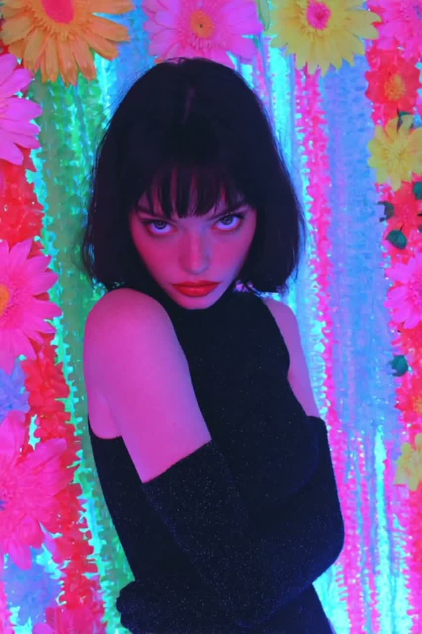 modern hi-fi dreamywave disco-pop, nu-disco dance anthem with 70s funk and house pulse, glamorous nocturnal vibe, four-on-floor kick, dry snare, crisp hats and claps, syncopated funk breaks, bass-forward mix with round funk bassline, slap pops, fingerstyle runs, octave jumps, occasional bass drops, bass-house punch, clean funky guitar chanks, disco-wah and ska upstrokes, Rhodes and clavinet stabs, synth-horn hits, bright arps, glossy polysynth pads, spatial FX, swelling atmospheric sub, short sax solo, jazzy extended chords and quick modulations, trance-lift prechorus into explosive hooky chorus, vocals: confident cool female lead, clear sensual tone, talk-sung adlibs and flirtatious spoken hooks, chesty verses into controlled belts, minimal vibrato, smoky retro-soul grit, art-pop bite with dance-punk edge, tight stacked harmonies, airy falsetto layers, whisper stacks, punchy doubles, radio-ready polish, wide stereo, thick but clean low end, loud yet dynamic master