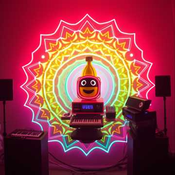 energetic happy funky major groove, loopy and twisted, mellotron, tabla, symphonic orchestra, dramatic, modular synthesizer, groovy, deep phat bass, female vocal, rich chorus, horns, sarangi, steelpan, gamelan, mariachi, minimal