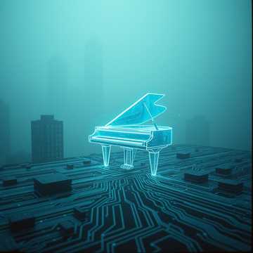 Slow-building cinematic ambient electronica, 70 BPM, Evolving piano ostinato in D minor over i–VI–III–VII with added suspensions; low subs and glassy pads create a weightless bed, Quantized synthetic pulses contrast a subtly drifting top line and low choir swells, Mid-song, introduce counterpoint, processed noise wash, and a brief Phrygian shift for maximum unease; reserve a bold, bright V chord for the climactic release, Wide stereo field, pristine reverb tail, and detailed automation on filter and dynamics, low, electronic, ambient, minimal, noise