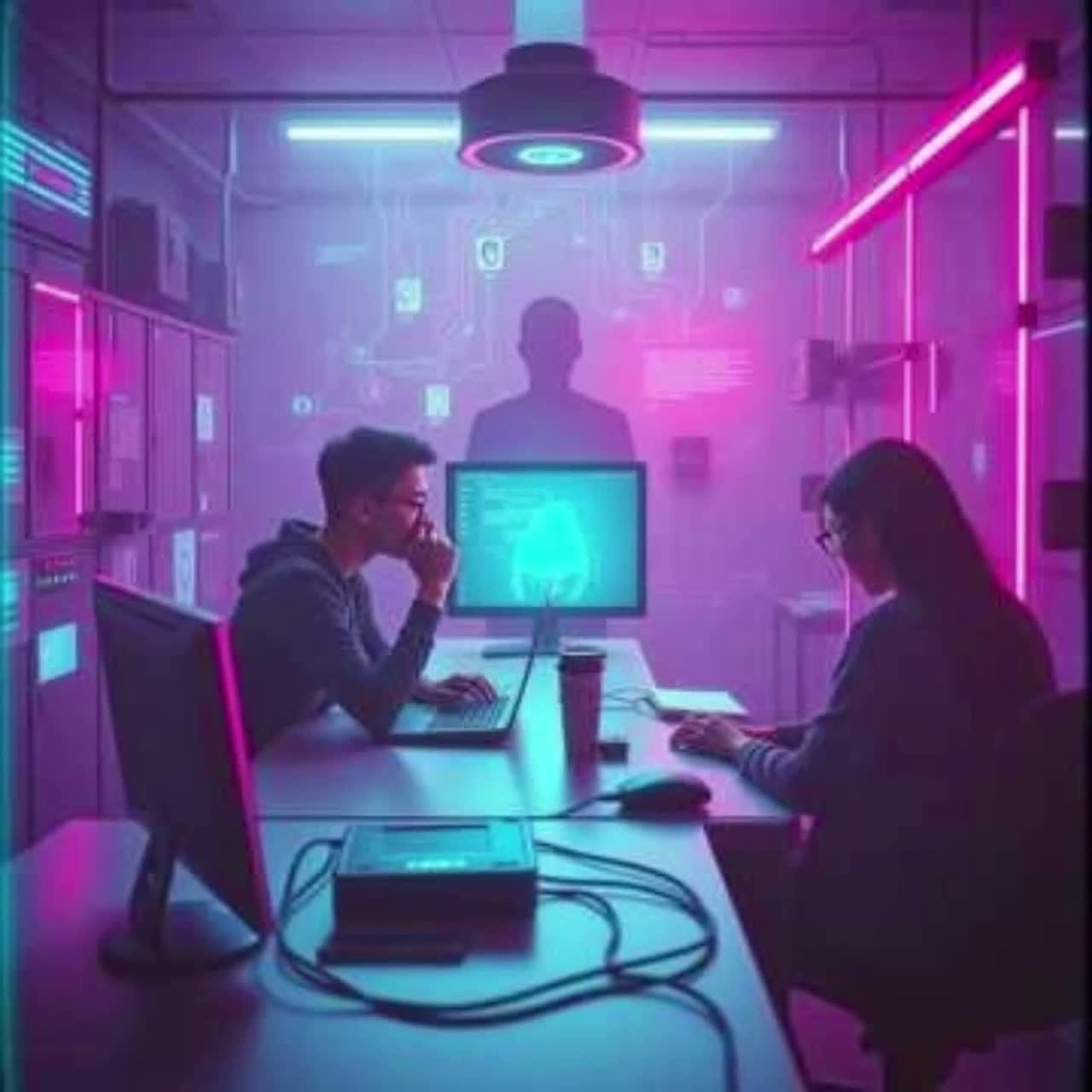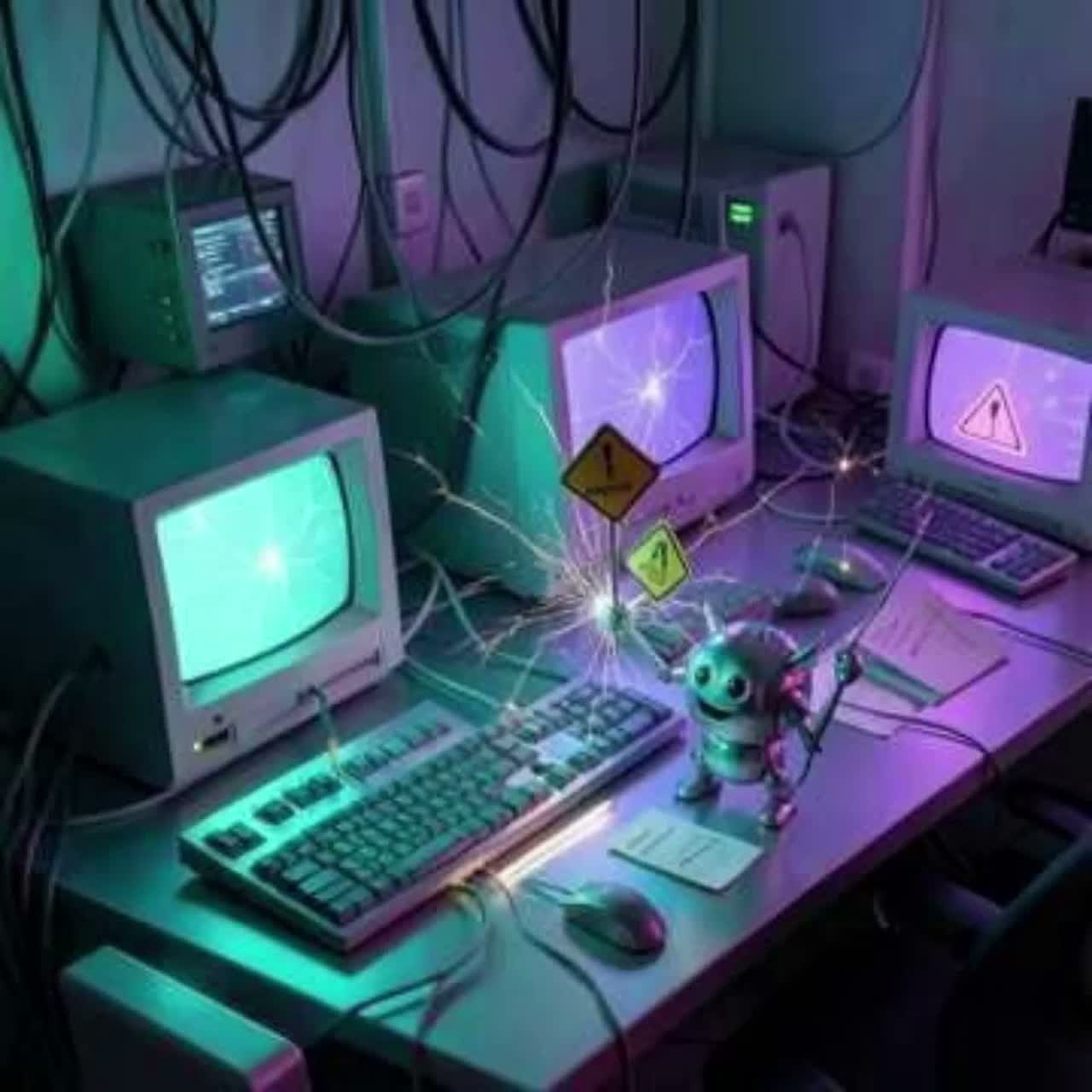 Upbeat electronic rock / synth-rock theme song with punchy drums, bright arpeggiated synths, crunchy guitars, playful glitch sound design, comedic accents, and a big singalong chorus, Tempo ~140 BPM, Energetic and chaotic but warm, Vocals: confident, witty lead with group shouts in the chorus, Production: modern, polished, with occasional “AI malfunction” vocal chops and error-beep fills, Mood: fun, heroic, slightly mischievous