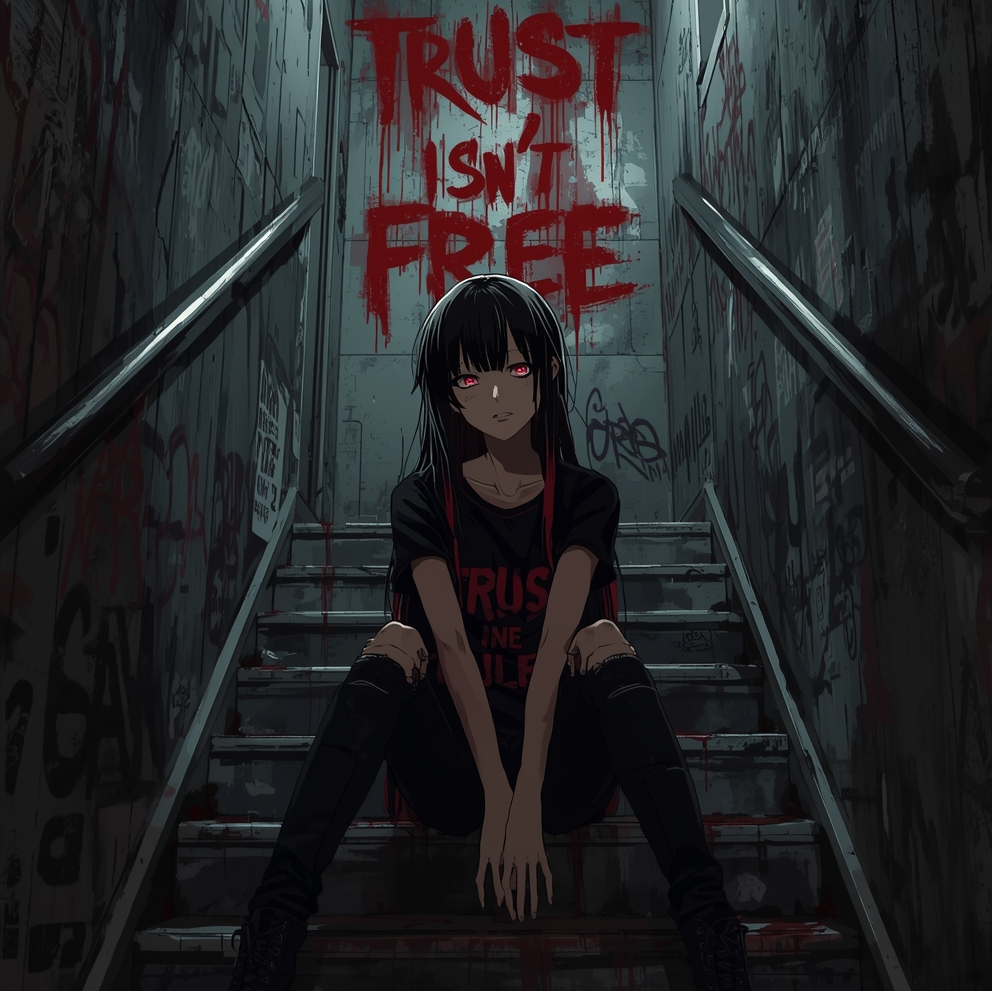 Starts with gritty, distorted guitars and punchy trap-infused beats, layered with synth textures for dark pop tension, Verses mix raw punk energy and electronic flourishes, erupting into explosive, anthemic choruses driven by powerful drums and attitude-laden vocals, Bridges weave riot grrrl edge with grunge angst, balancing catchy hooks and gothic romance through atmospheric effects, culminating in a frenetic, chaotic outro
