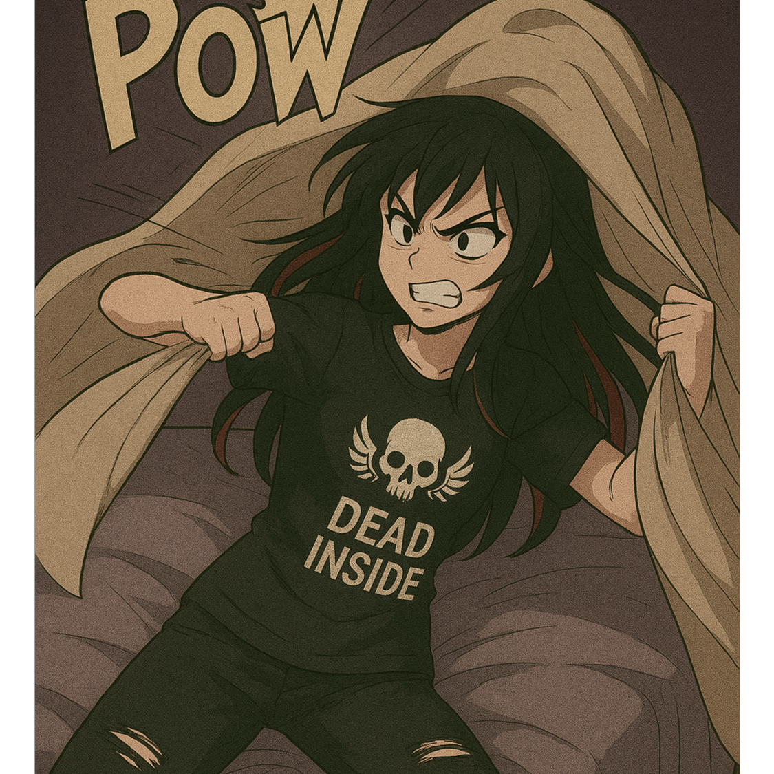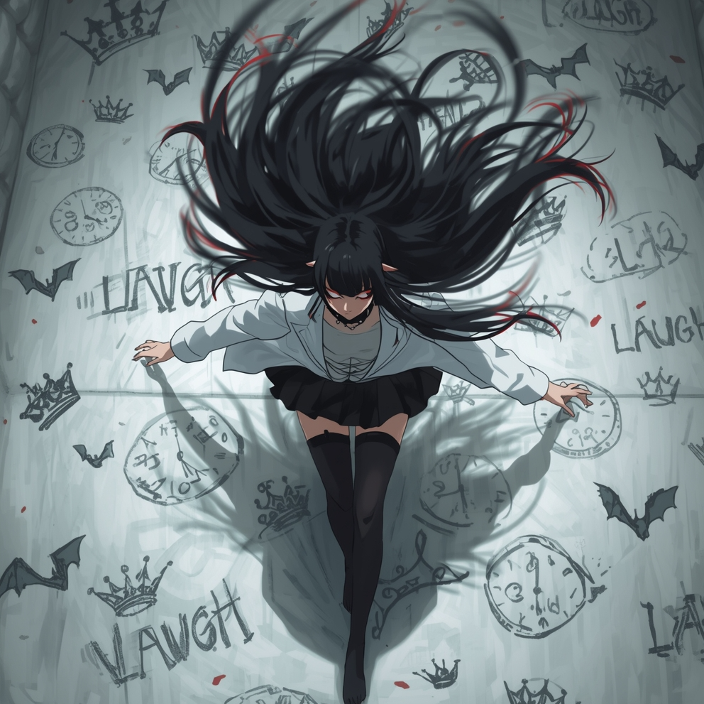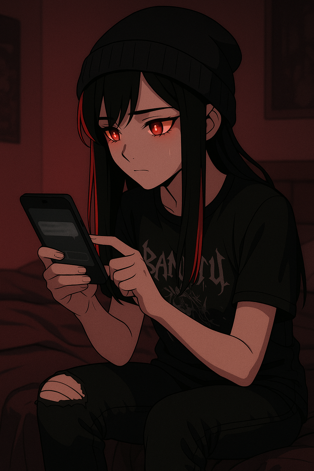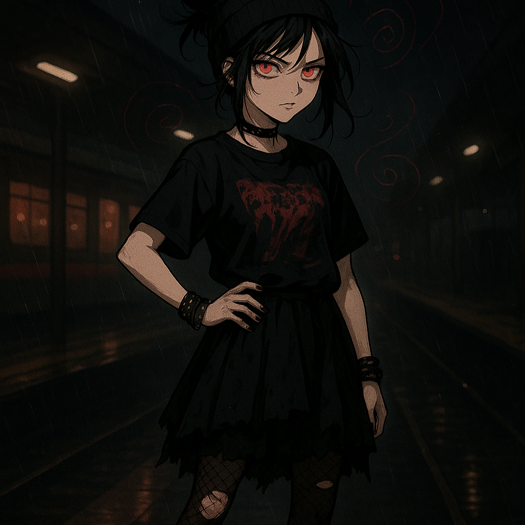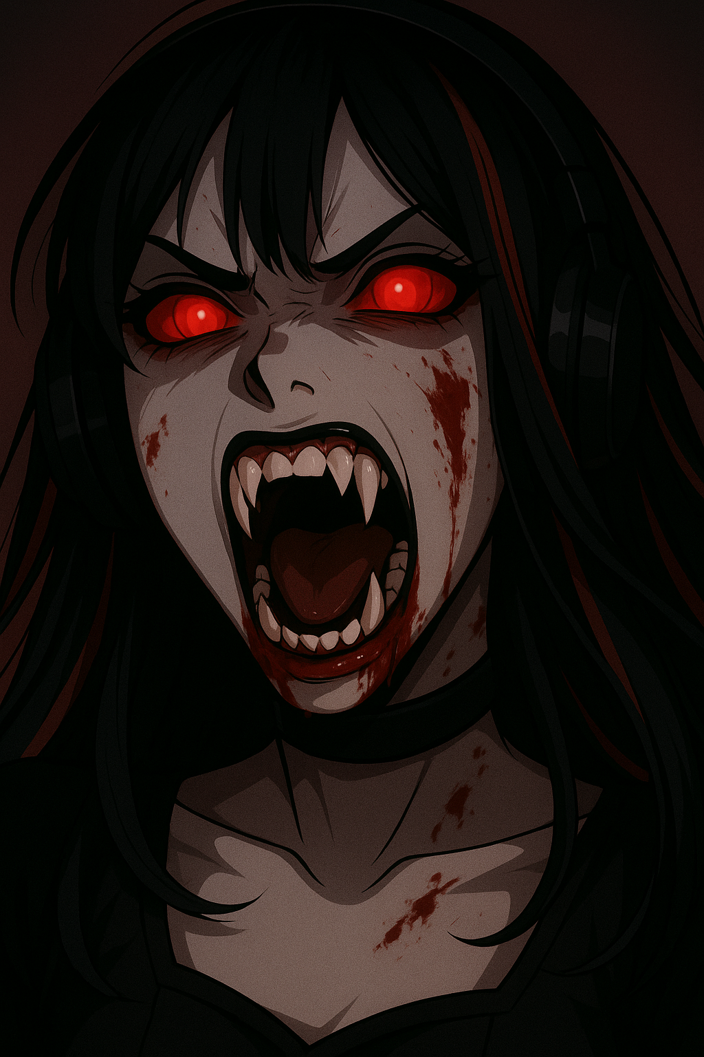 Opening with distorted bass and crunchy guitars layered over industrial metal rhythms, the track fuses pop punk bounce with nu-metal heaviness and trap-inspired hi-hats, Verses pulse with gothic synths, angsty attitude, and riot grrrl vocal edge before exploding into chorus hooks with dark pop precision and melodic catchiness, Grungy breakdowns blend vampire-tinged dubstep drops, all saturated in saturated alt-rock textures and pulsing chaos