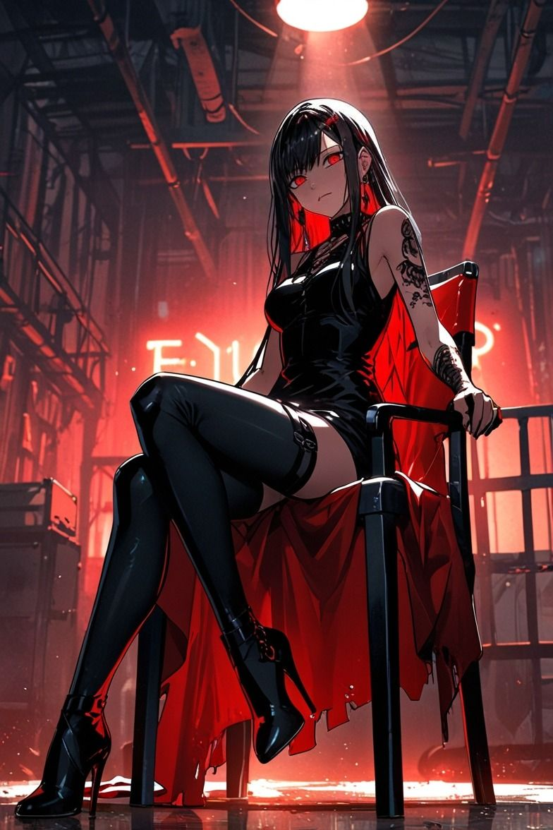Start with gritty, fuzzed guitar riffs and a punchy, syncopated rhythm section, Verses drip with attitude—crunchy distortion, furious bass, and pounding drums drive snarling female vocals, The chorus explodes into melodic hooks, Sudden, heavy breakdowns heighten chaos and gothic drama