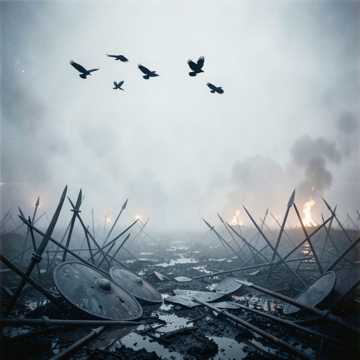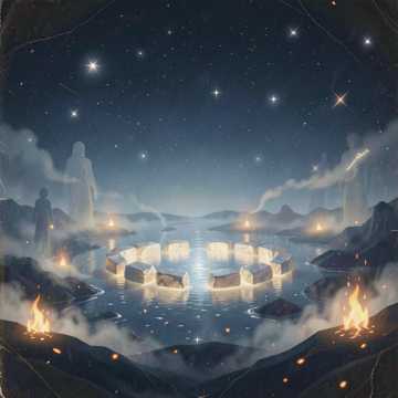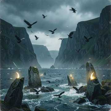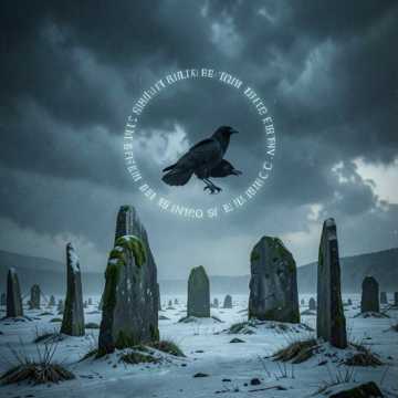 Mood: Feierlich, nachdenklich, düster, mystisch, vorahnend, ehrfurchtgebietend, Instrumentation: Tiefe, hallende Tribal-Drums; weite, kalte Pads; scharf schneidende, aber melancholische Flöten- oder Duduk-Motive; ferne, wehmütige Kriegshörner; tief pulsierender Bass; Geräusche von Rabenkrähen und Wind