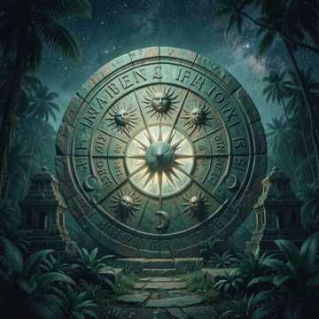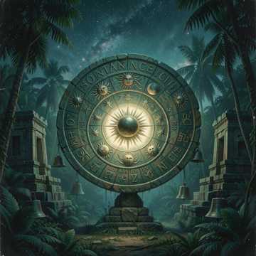 Dark progressive trance, ancient Mesoamerican atmosphere, hypnotic cyclical arpeggios, deep tribal drums, emotional male vocals, mystical female vocals, female spoken word, distant ceremonial bells, 126 bpm, endless calendar, cosmic time, rise and fall of empires
