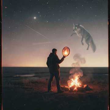 Dark progressive trance, Native-inspired atmosphere, wide open plains, deep shamanic drums, emotional male vocals, ethereal female vocals, female spoken word, subtle flutes, low chants, 124 bpm, vision quest, sacred fire, stars above