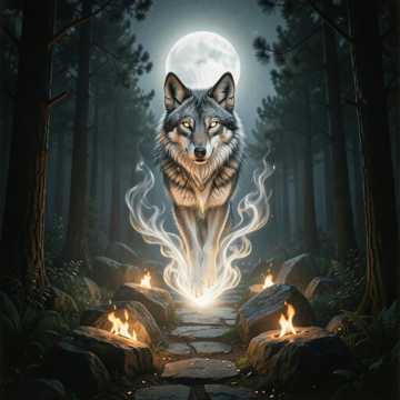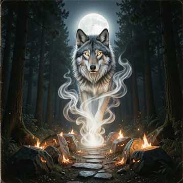 Dark progressive trance, ethereal animal sounds, deep rhythmic pulsing, spiritual male vocals, animalistic guiding female vocals, female spoken word, wide sub-bass, 126 bpm, totem animal, inner wisdom, wilderness spirituality, personal quest, Mood: Persönlich, mystisch, weise, kraftvoll, schützend, geheimnisvoll, mit einem Gefühl von tiefer, instinktiver Verbindung, Instrumentation: Tiefe, hallende Pads; ein rhythmisches, oft perkussives Pulsieren, das die Anwesenheit des Tiergeistes andeutet; spezifische, oft subtil verarbeitete Tiergeräusche (Adlerschreie, Wolfsheulen, Bärenbrummen); tiefer, pochender Sub-Bass; ätherische Synth-Melodien, die an alte Weisheit erinnern; Flötenmotive