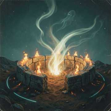Dark progressive trance, deep resonant pads, powerful earthy drums, spiritual male vocals, ethereal ancestral female vocals, female spoken word, wide sub-bass, 120 bpm, ancestral connection, timeless wisdom, spiritual strength, tribal, Mood: Geerdet, spirituell, kraftvoll, ehrfurchtgebietend, zeitlos, mit einem Gefühl von tiefer Verbundenheit, Instrumentation: Tiefe, resonante Pads; kraftvolle, langsame Erdtrommeln und Percussion, die das Gefühl von Stammesversammlungen oder alten Zeremonien vermitteln; weite, warme Sub-Bässe; ätherische Synth-Melodien, die an alte Gesänge erinnern; subtile Geräusche von Wind oder alten Stimmen
