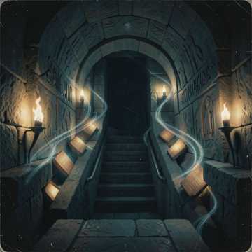 Dark progressive trance, ancient tribal percussion, haunting Duduk melodies, deep sub-bass, mysterious female spoken word, powerful male vocals, ethereal female vocals, 126 bpm, mystical atmosphere, ancient ruins, driving rhythm, Mood: Mystisch, beklemmend, treibend, geheimnisvoll, ehrfurchtgebietend, Instrumentation: Komplexe, treibende Tribal-Percussion; tiefe, unruhige Pads; schimmernde, fast flüsternde Synths; ein knurrender Sub-Bass; eindringliche Duduk- oder Flöten-Motive