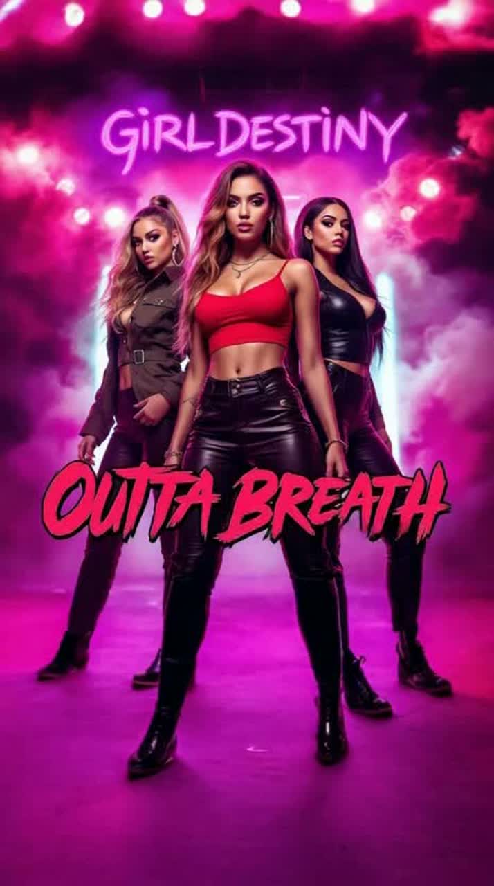 Explosive R&B/marching-band pop hybrid at 128 BPM, Syncopated hip-hop drums—tight snares, deep 808s, live toms—drive fierce female trio vocals with rhythmic phrasing, vocal stacking, sassy call-and-response, and harmonized riffing, Verses alternate crisp leads with panned callouts, Bridge features foot-stomp claps, Final chorus: key modulates up, choir-style echoes, breathy FX, and heavy reverb punctuate “outta breath” lines, abrupt ending—one stomp, then silence, Bass pulses like a wild heartbeat, built for high-impact dancefloor diva moments