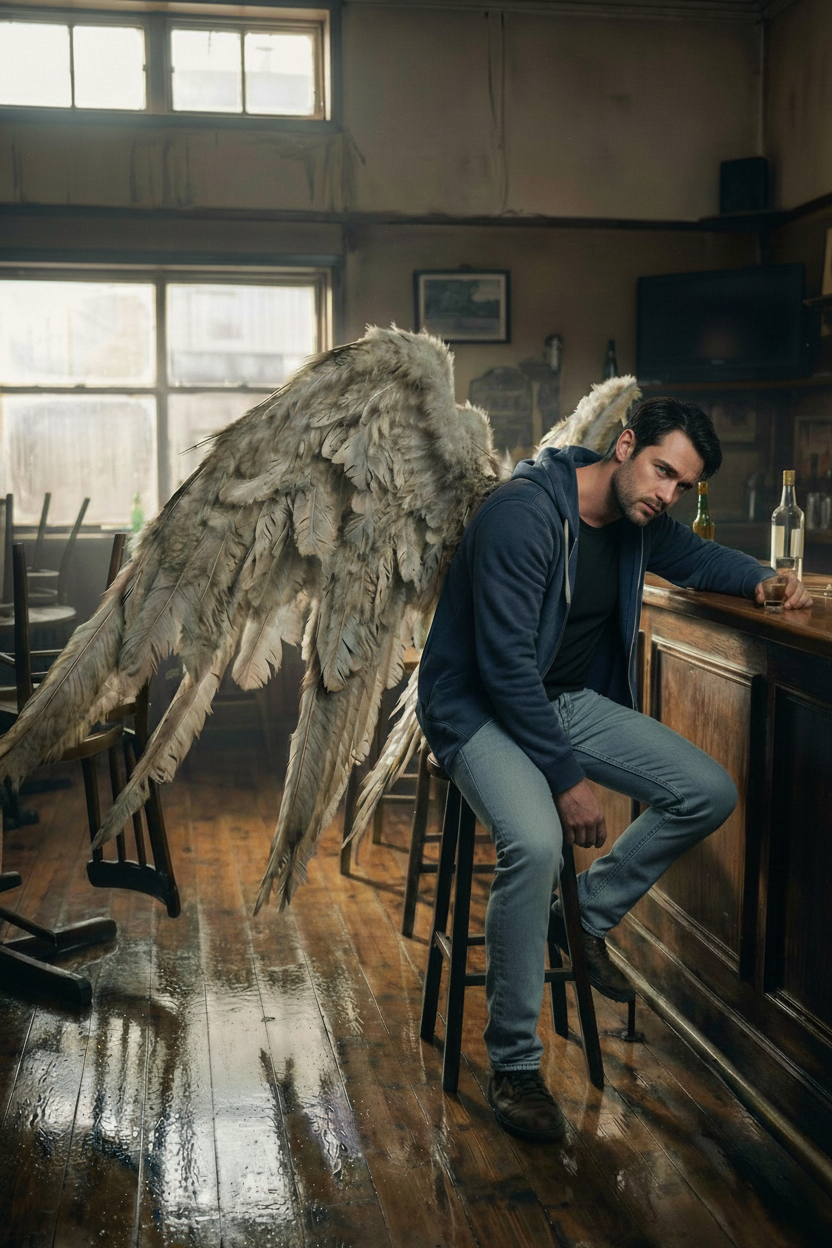 Tempo:Slow swing, 60-70 BPM, Heartbeat rhythm, Vocal:Deep male baritone with clear articulation, Smooth but with warm whiskey rasp, Hints at weariness, Poetic, intimate, confessional, Instrumentation:Walking double bass, brushed drums, melancholic piano(jazz chords), Lyrical, mournful tenor sax solos as emotional replies, Warm, "analog"sound, empty nightclub ambiance, Contrast cool, stylized elite bar verses with intimate, sparse nocturnal sections(just voice, bass, piano), Chorus lifts with vibraphone but no pop crescendo, Mood:Sophisticated, smoky melancholy, Bittersweet nostalgia, dark romance, polished facade vs raw passion
