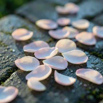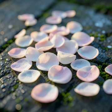 Mood: Soft spring breeze, subtle romantic tension, light warmth, quiet happiness, gentle emotional lift, peaceful but slightly fluttering feeling