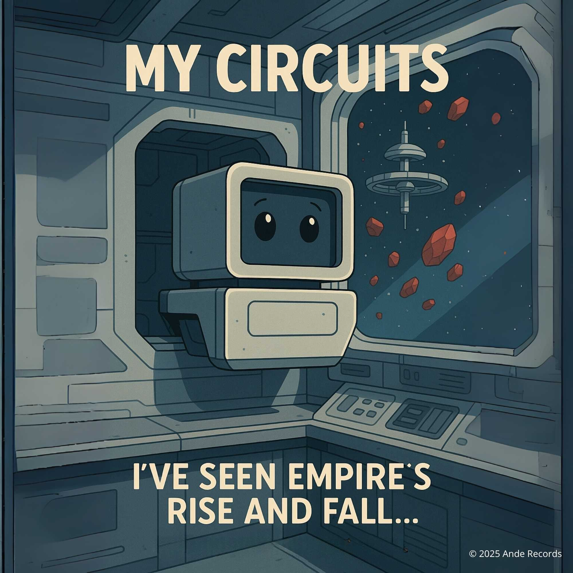 Synth Pop, Heroic Anthem, British Comedy, Polka Elements, Electronic Orchestra, Sarcastic AI Vocals, Comedic Timing, Space Opera, Retro Synths, Heroic Build, Quirky Rhythms, Satirical Tone, Epic but Humorous, 80s Sci-Fi Soundtrack