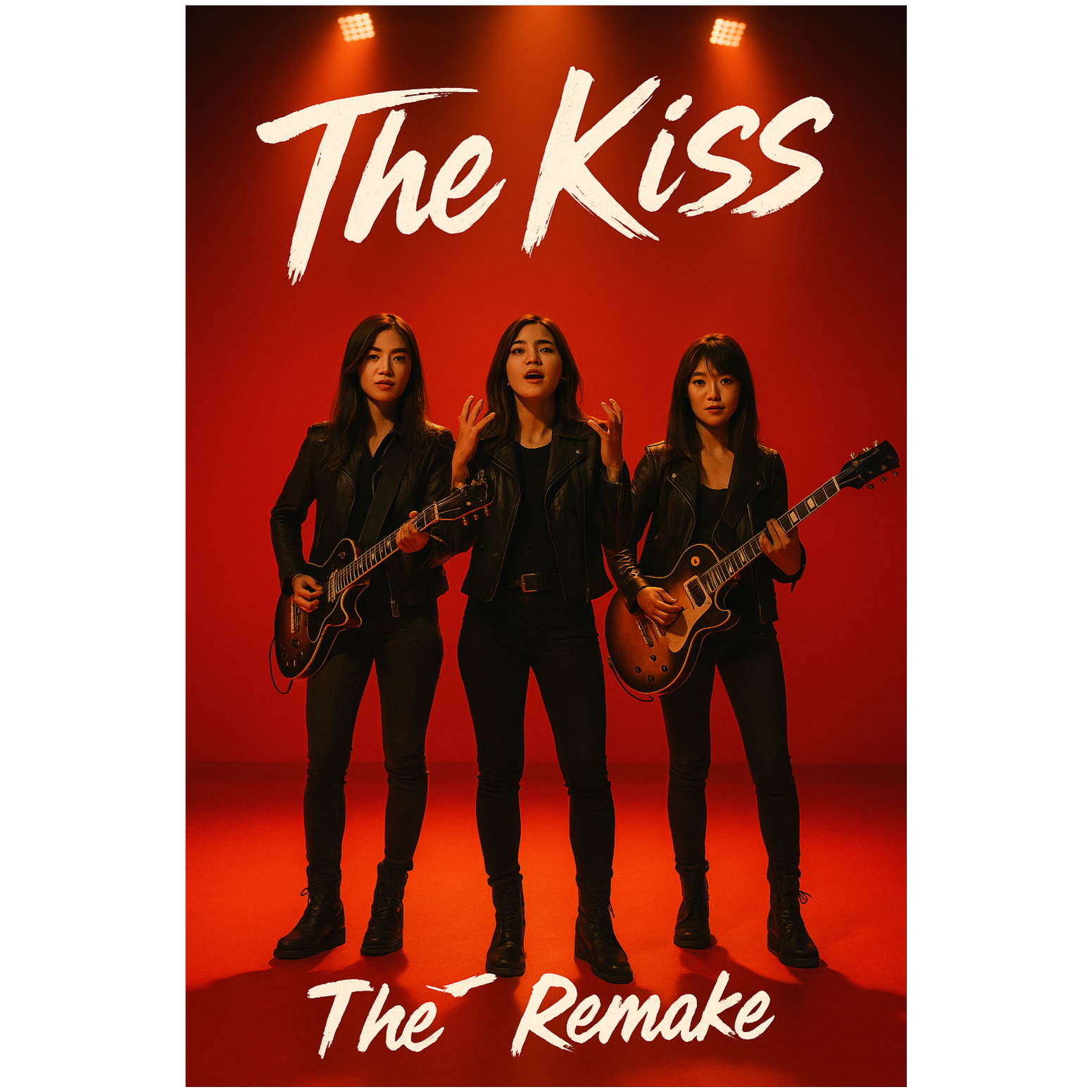 3 Girl voice, Female-Group, K-pop x J-Rock hybrid demo (emotional rock with pop structure), Electric guitar intro riff + solo in interludes, Driving rock drums (kick-snare-heavy), Synth textures in intro and outro, Ambient pads under vocals, Tempo: 128 BPM, Mood: Melancholy, fierce regret, emotional catharsis