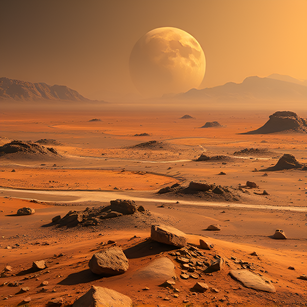 and a distant, minimal instrumentation with soft synthesizers, ambient, echoing vocal texture to evoke the desolation and stillness of mars, ethereal, sparse piano notes