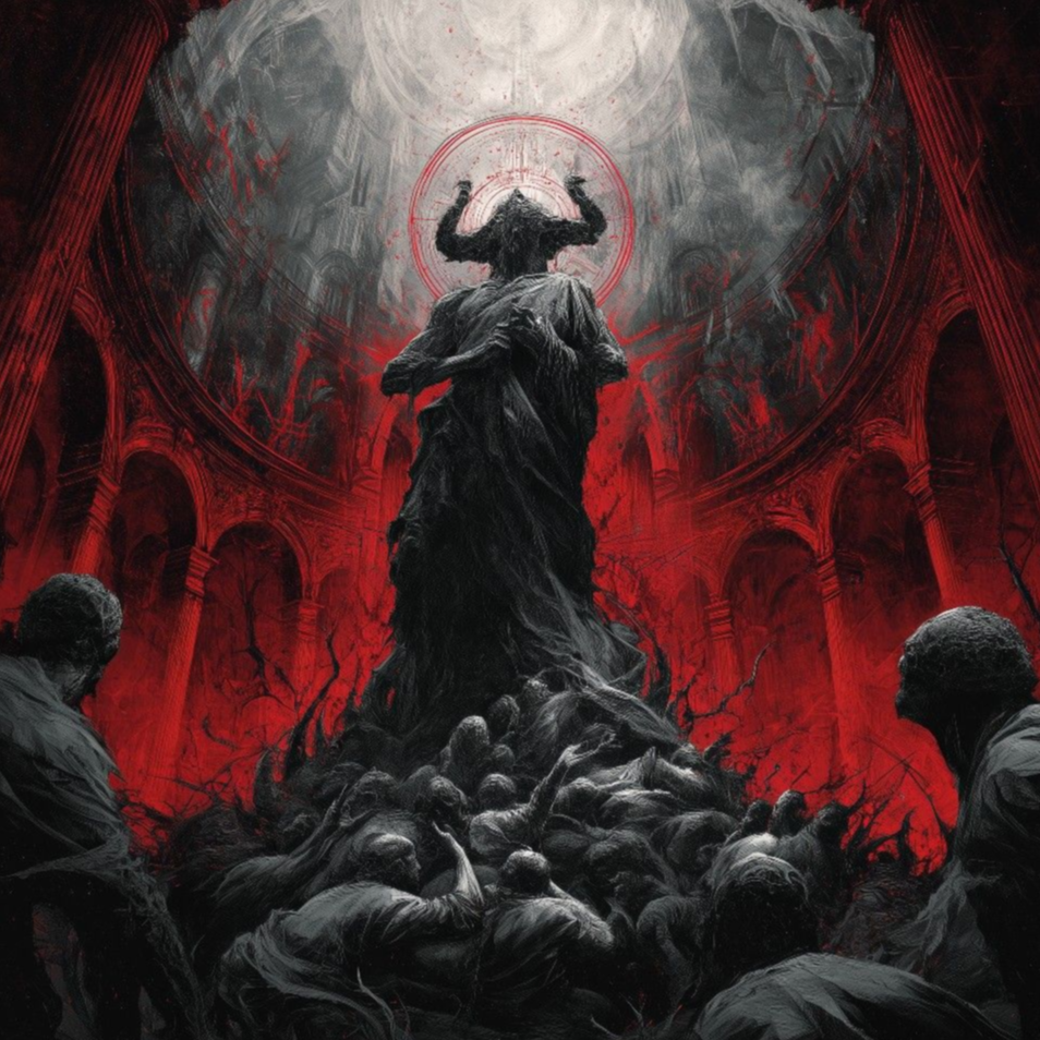 Industrial Dark Folk with heavy stomps, Trap rock elements merge with glam swagger, Midtempo, crushing and cold, Male vocal: cynical, sarcastic, sinister—every word drips with contempt, Verses are sparse and intimate, whispered menace over rumbling bass, Choruses explode into massive industrial-glam hybrids with mechanical drums and filthy distorted guitars, Prominent bass guitar drives everything—deep, rattling, felt in the ribs, Production: cinematic, vast, industrial, Guitars alternate between grinding industrial riffs and haunting acoustic folk textures, Trap-inspired hi-hats and 808 weight meet live drum stomp, Dynamics shift from quiet mockery to explosive, anthemic releases, The vibe: a reckoning from below, Dark, cold, mocking, A spit in the face of heaven set to a stomping industrial groove, Occasional eerie folk melodies cut through the noise like memories of a world before the fall, Vocals sneer, seduce, condemn—the devil's greatest hit