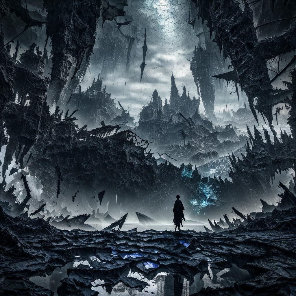 American Nu Metal, djent, Electroneuro beats, syncopated beats, double guitars, heavy keyboard riffs, electronic pulses, synthesizers, slow, dramatic, melodic, epic