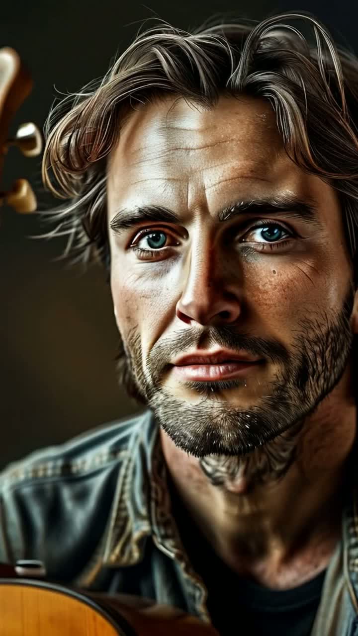 Melancholic yet cozy acoustic track inspired by rainy days, soft guitar strums, warm piano, subtle ambient rain and nature sounds, gentle mid-tempo rhythm, emotive vocals reflecting nostalgia and introspection, powerful choir in the chorus, layered violin and cello, expressive harmonica, warm and comforting atmosphere, capturing the smell of wet grass, quiet home, and spark of creative inspiration
