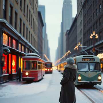1950s–early 1960s uptempo holiday orchestral number with lively strings, light brass, brushed drums, and subtle bells used as texture, Sophisticated city-at-Christmas feel, Bright tempo with varied phrasing and playful rhythmic shifts, Warm vintage mono vocal tone, Lead vocal: lyrical soprano, crisp mid-century diction, poised and confident delivery—seasonal, observant, and lightly detached rather than sentimental