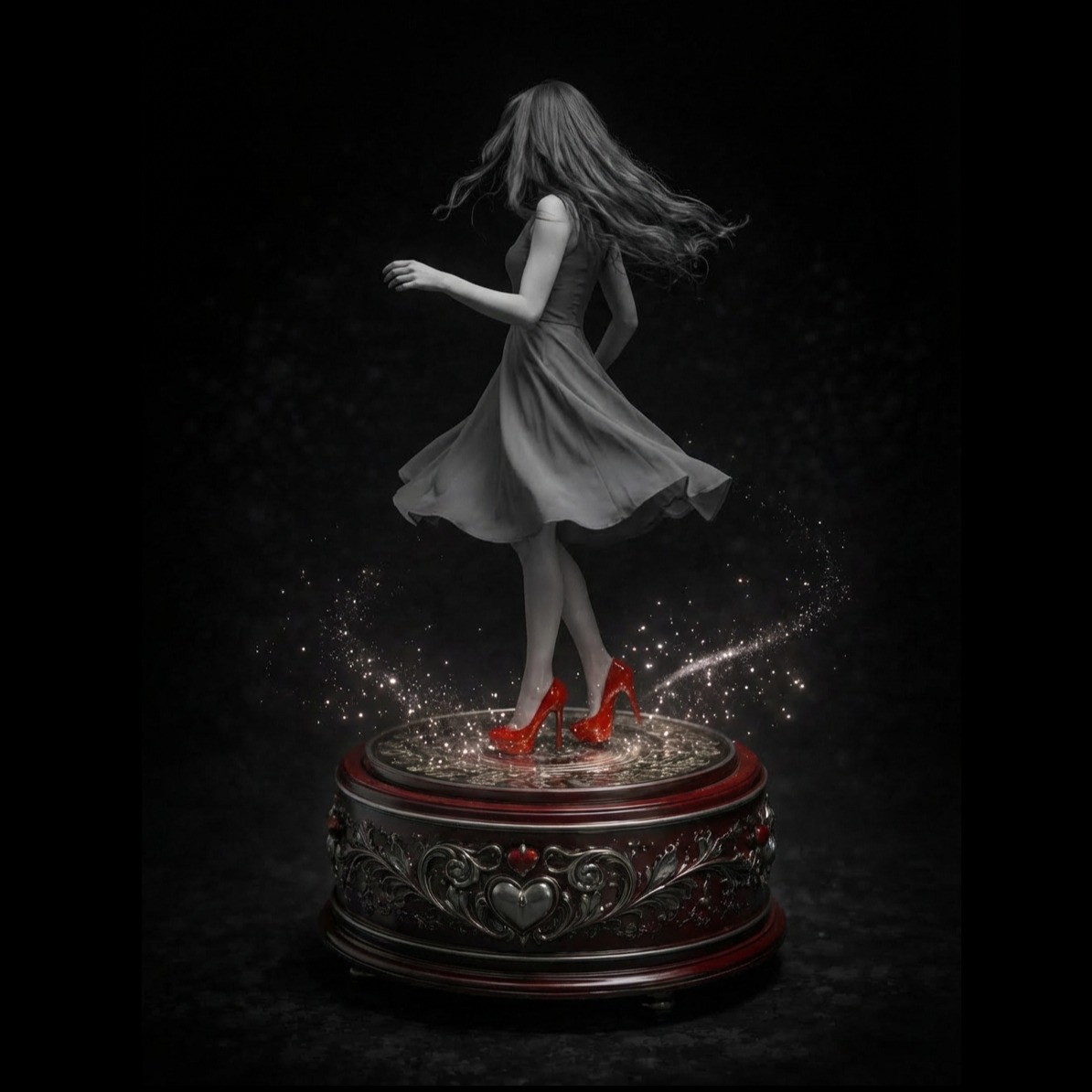 [2 bars: SFX: music box wind-up key cranks (clockwork winding clicks)