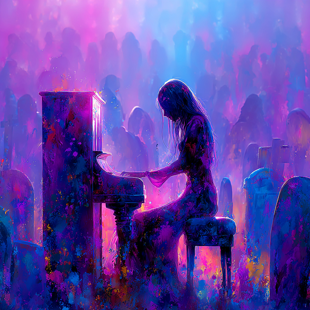 Opening with haunting fingerpicked acoustic guitar, soft strings, and subtle atmospheric pads, the traditional folk foundation is fused with trap hi-hats and deep sub-bass, Verses layer plaintive vocals atop sparse folk textures, then chorus swells with alternative rock drums, reverb-soaked electric guitar, and pop urbaine synths, Bridge adds filtered beats, echoing vocal chops, and mournful melodies before fading to intimate folk lines and gentle electronic pulses