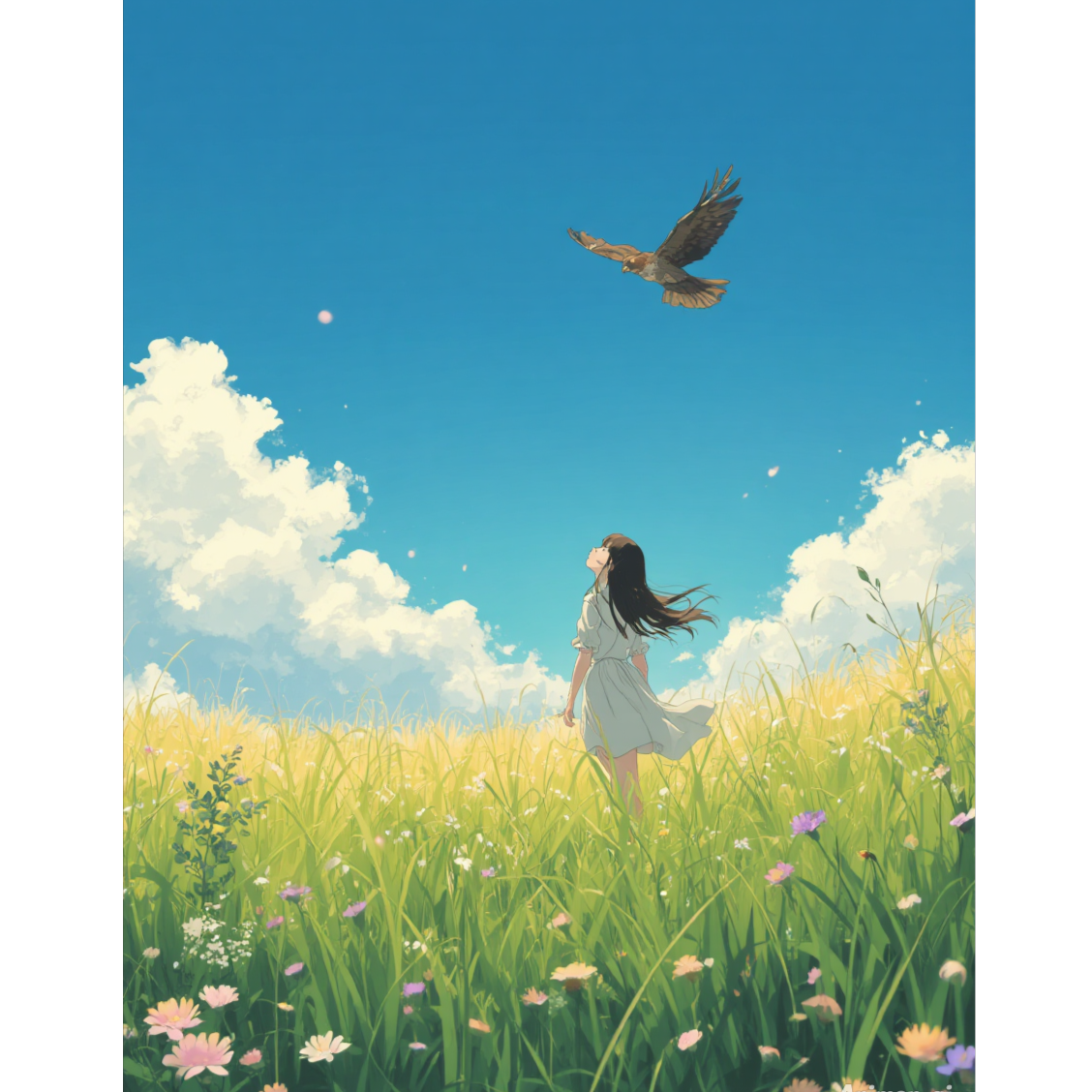 Delicate piano and dreamy strings open the song, evoking wonder as subtle woodwinds and soft harp weave through gentle percussion, Female vocals float atop, accompanied by warm synth pads, The arrangement swells in the chorus, capturing the expansive beauty of a sky-bound, nature-filled island