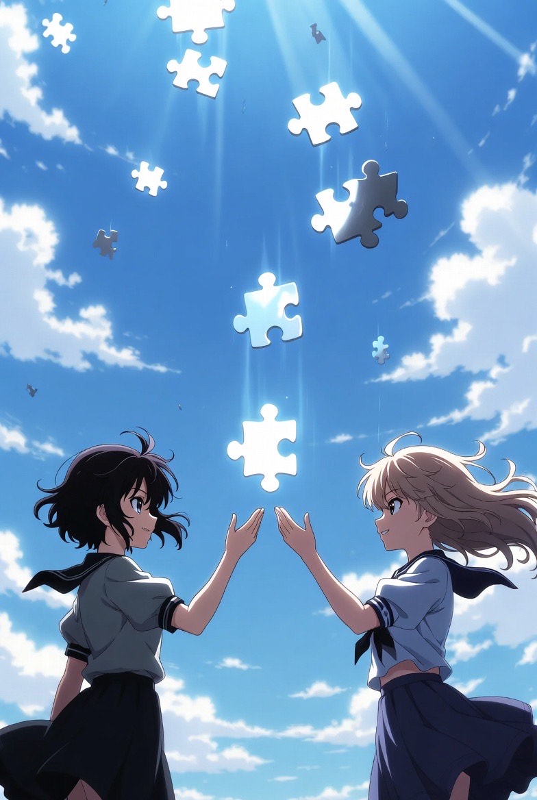 Sparkling anime romance opening theme, instrumental intro with glittering guitars and synth bells, cute anime girl voice, soft and sweet singing style, emotional but controlled vocal, bright J-pop arrangement, nostalgic youth love feeling, catchy chorus, no shouting, no aggressive vocals, no screaming, gentle kawaii anime vocal