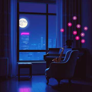 bedroom, city pop, night, moon, classic late-night jazz intro