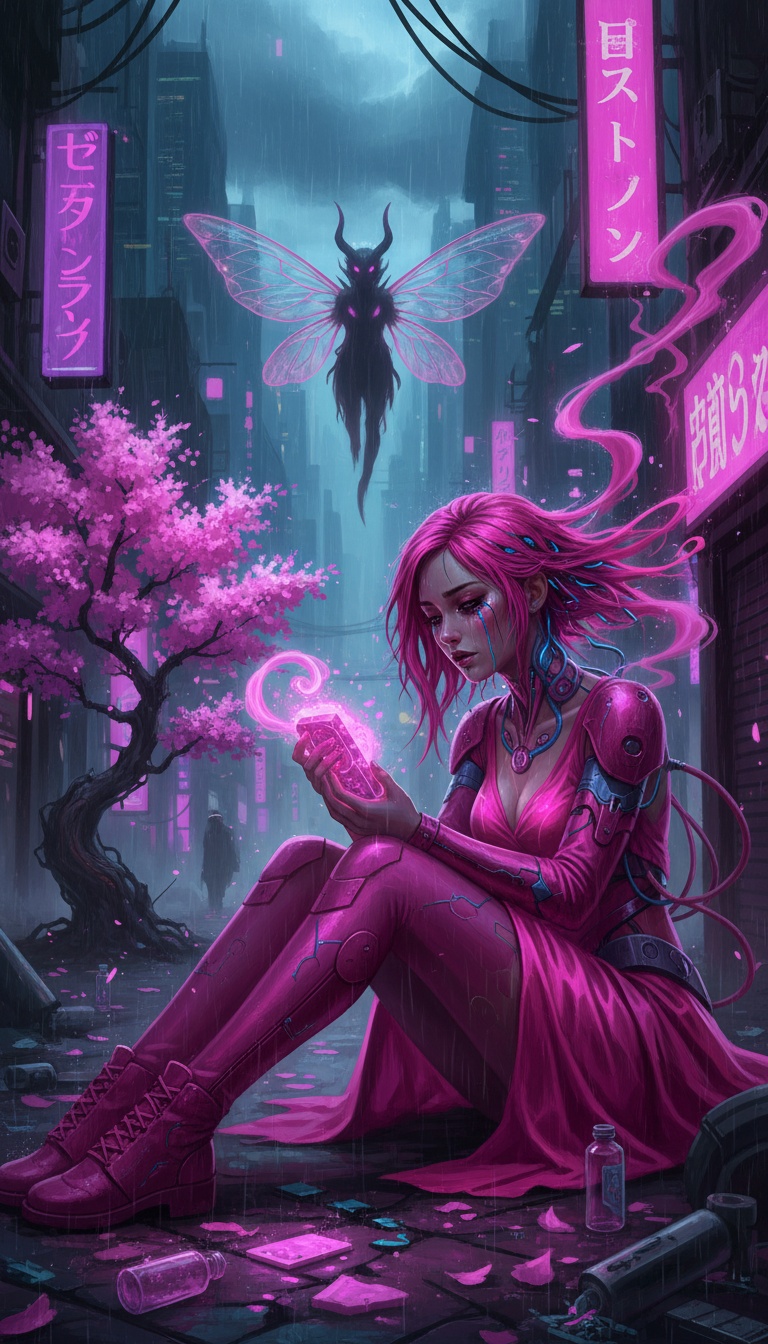 Opening with dark, processed synths and a hard-hitting trap beat, quick BPM paces the nightcore elements layered with aggressive percussion, Textured art pop samples and distorted guitar stabs build gothic atmosphere, Edgy male vocals deliver emo melodies with raw power over industrial drops