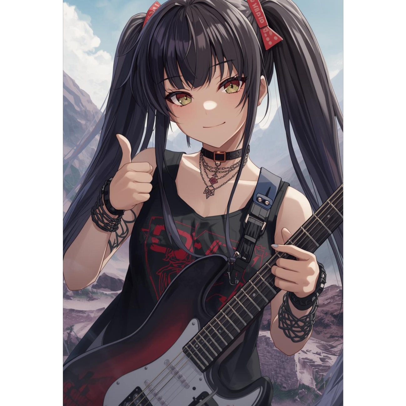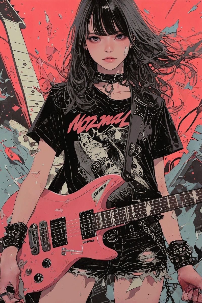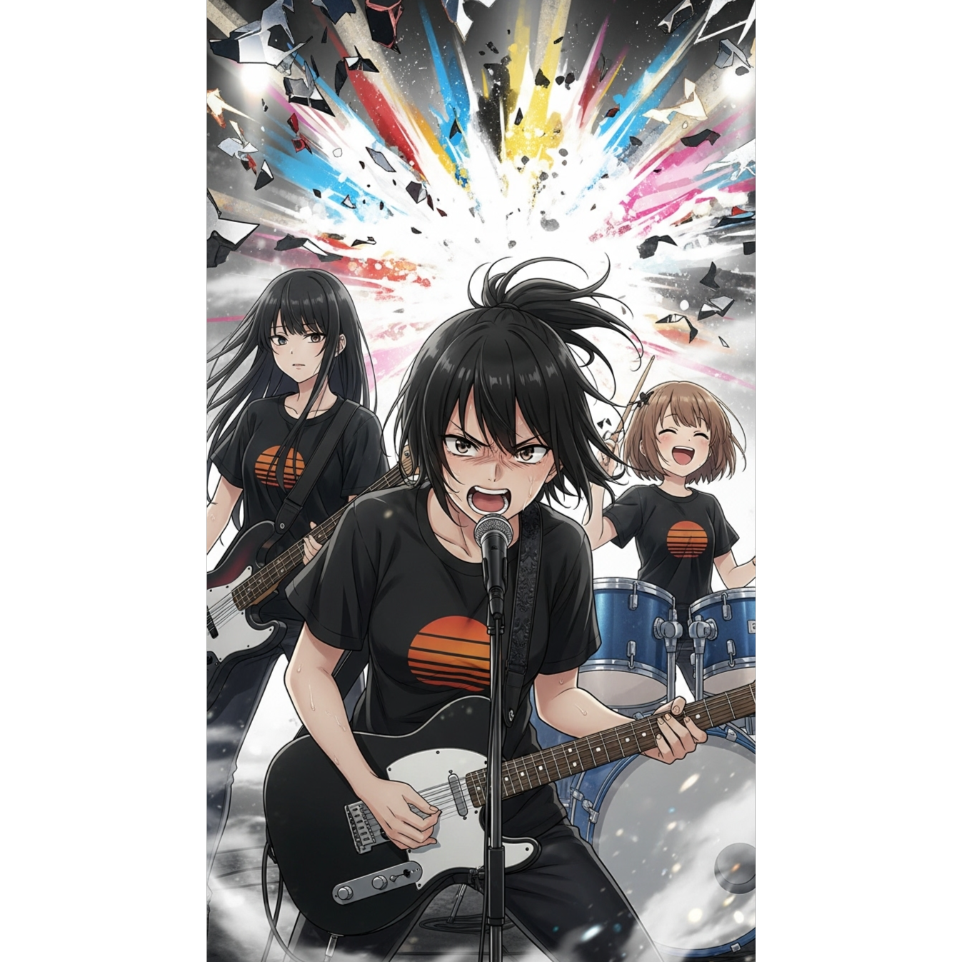 High-speed Japanese rock with a melancholic twist, 180–200 BPM, Female vocal: dramatic and emotional, soaring in choruses while maintaining clarity in verses, Rich layering of traditional Japanese instruments (koto, shamisen) providing a beautiful and melodic backdrop, Rhythm guitars: heavy distortion for aggressive, tight riffs; maintain a strong presence in verses and choruses, Use palm-muted sections for verses, with crunchy power chords in the chorus to create contrast, Clean guitar accents can be layered for atmospheric effects, Bass: punchy and melodic, locking tightly with the kick; use a warm tone with some grit, Drums: fast, energetic, with snappy snares and double-kick for a driving force; occasional fills to add excitement