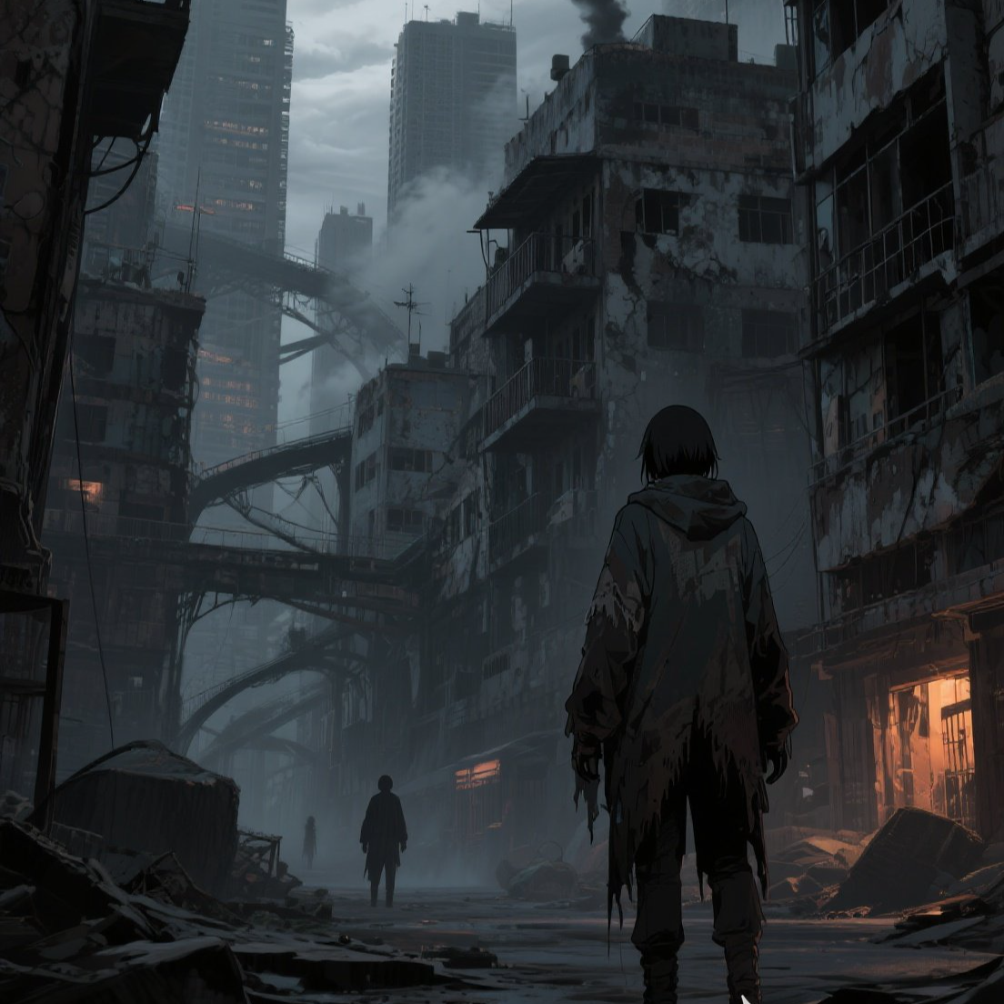 Dark gothic rock × industrial rock, BPM 145–155, Powerful distorted guitars with deep, crushing riffs; metallic bass lines; mechanical drums with sharp snare and pounding kick, Glitch noise and atmospheric synths build a dystopian soundscape filled with chaos and beauty, The rhythm is energetic and danceable, like a rave in a collapsing world, Male vocals: clear, emotional, yet slightly insane — a cold charisma that expresses madness and despair with elegance, Mood: manic, dark, apocalyptic, and beautiful — dystopian madness meets gothic allure, Structure: intro (mechanical ambience and noise), verse (tight and rhythmic), pre-chorus (tension build with distortion), chorus (explosive and melodic), bridge (industrial breakdown), outro (fading reverb and glitch)
