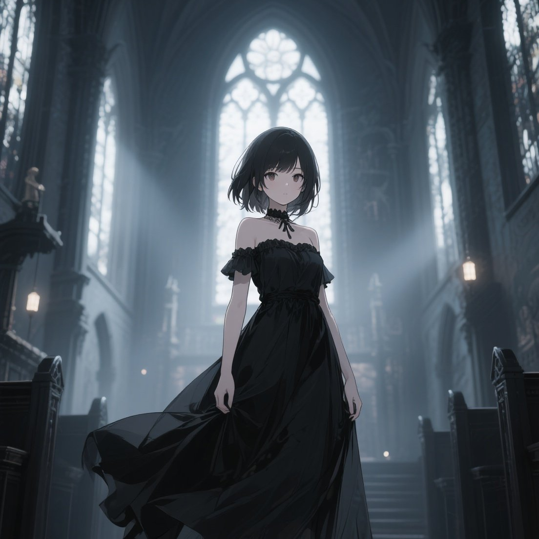 Dark, high-speed gothic rock, BPM 150–160, male vocals, clear and emotional, The rhythm section drives with intense drumming — deep snare hits, rapid double-beat kicks, echoing cymbals, and a brooding yet propulsive bassline, Distorted electric guitars unleash aggressive riffs and soaring melodic leads, layered with atmospheric cathedral-like reverb and haunting synth pads that add depth and tension, Vocals are clear, dramatic, and resonant, filled with cool emotion and gothic elegance rather than harsh screaming, The structure follows verse → chorus → instrumental break → final chorus, with sharp dynamic contrasts and moments of emotional climax, Production emphasizes dark grandeur, emotional intensity, and relentless gothic energy, creating a fast, cinematic atmosphere full of power and melancholy beauty
