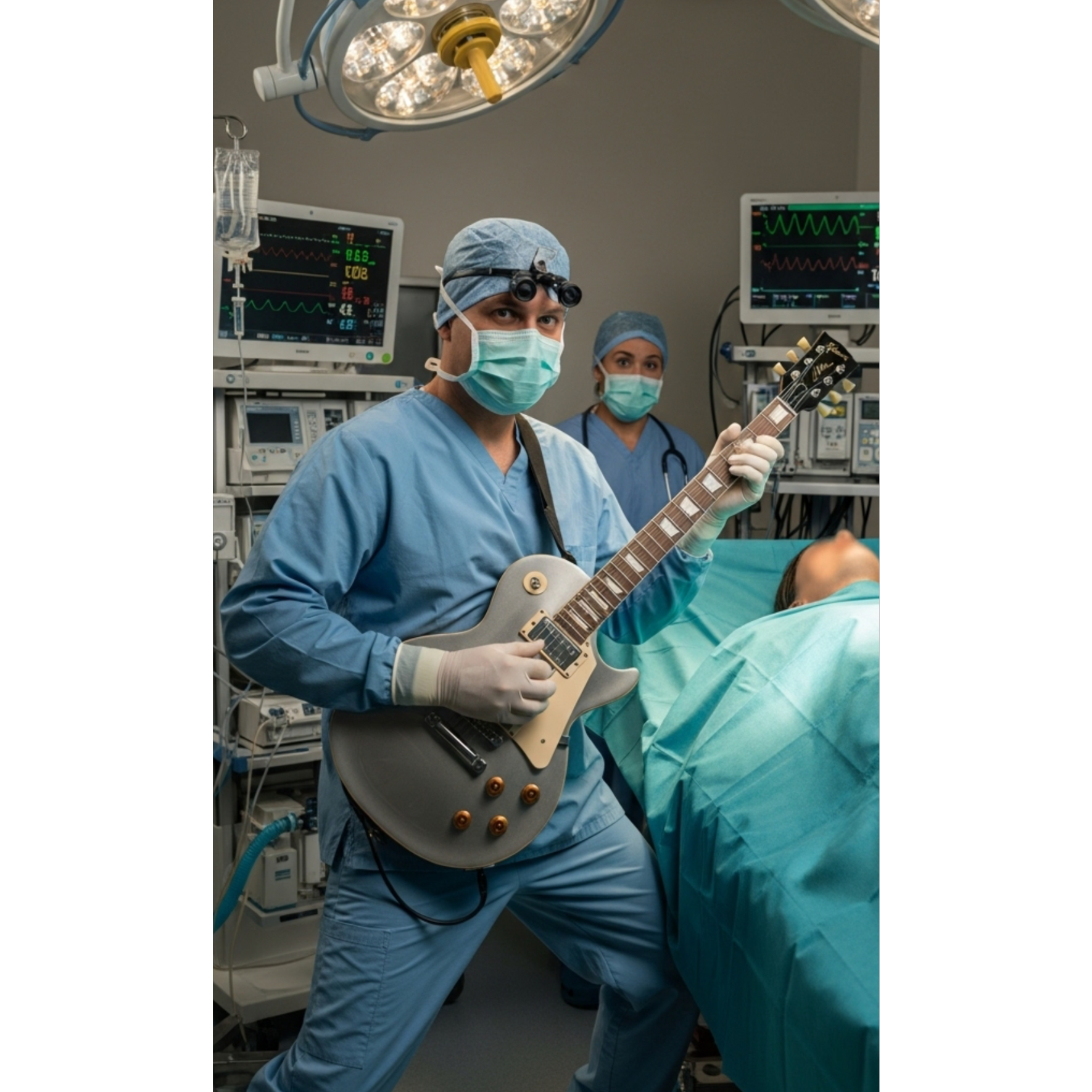 Synth-driven Rockabilly Djent, minor key, 162BPM, powerful male baritone vocal, twin electric guitars—one clean with sharp rockabilly cutting soaked in spring reverb, one 8-string with palm-muted djent riffs—analog synths lead with FM metallic slap tones and modular arpeggios creating a pulsing electronic swing, synth bass layered with sub oscillation and slapping attack, hybrid drums mixing acoustic snare crack with digital kick polyrhythm, neon reverb haze surrounds the sound as the groove fuses grease-era swagger and mechanical precision into a feverish cyber-boogie