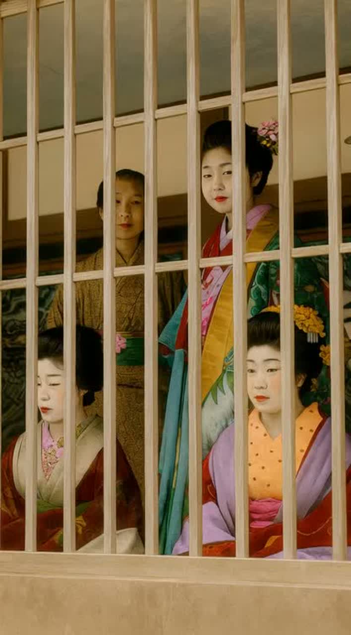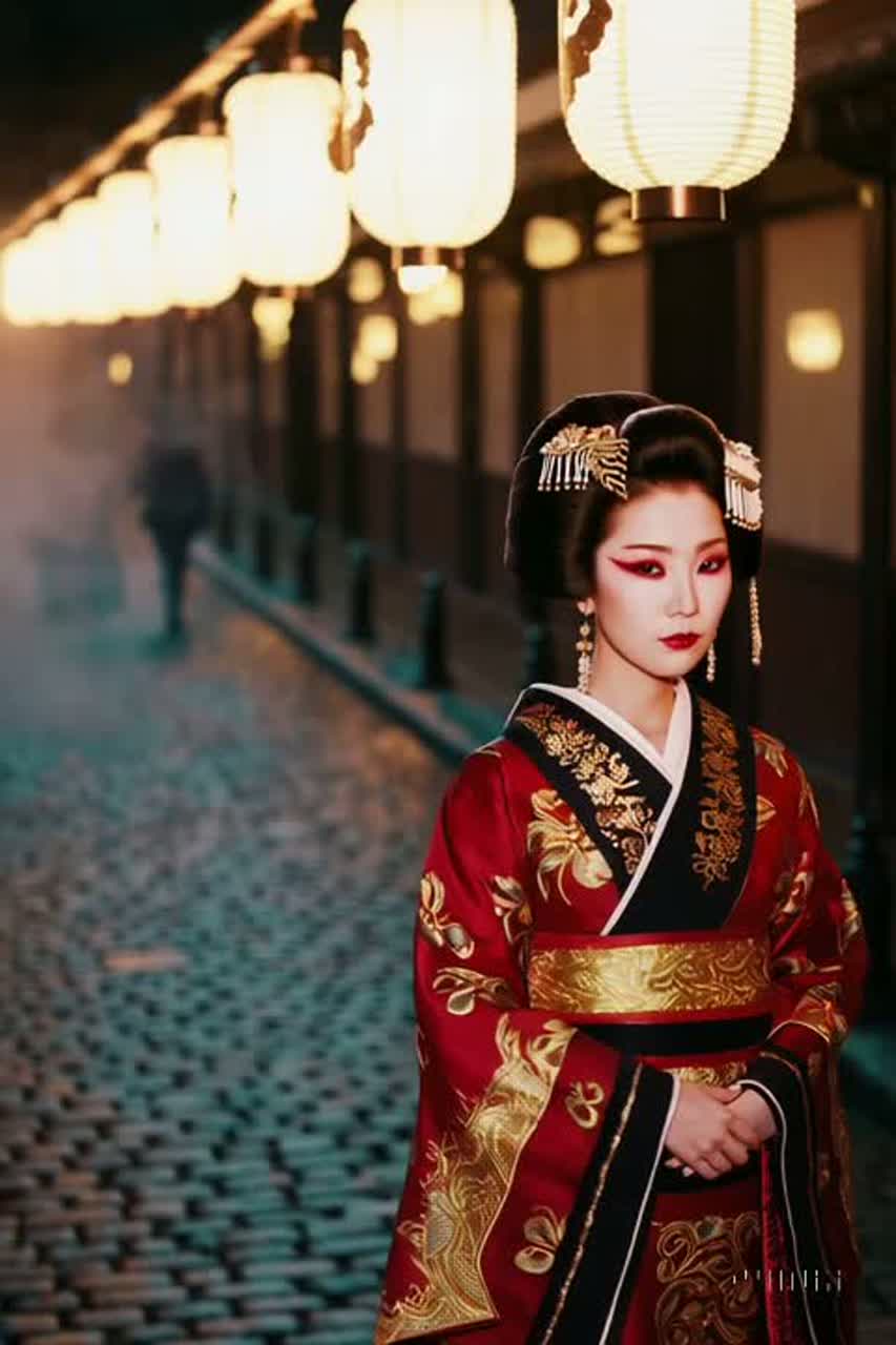 Vaportrap Rock, minor key, 78BPM, soft and floating female alto vocal, arpeggio koto weaving delicate echoes of red lantern nights, bass shamisen struck with strong bachi pulsing like the heartbeat of Yoshiwara’s hidden sorrow, bowed koto sustaining the breath of forgotten dreams, three-finger picking shamisen tracing fleeting smiles and tears, percussive koto tapping gentle steps of courtesans along misty corridors, rhythm shamisen grounding the flow of passing desire, steel koto shimmering like moonlight on silk sleeves, electric shamisen coloring faint digital haze behind the ensemble, grand taiko and tsuri-daiko resonating like the deep sighs of dawn, tenor shakuhachi and soprano shinobue whispering through vast reverb space—the sound of fading love and awakening dawn, where illusion and truth waver beneath the same sky of Yoshiwara