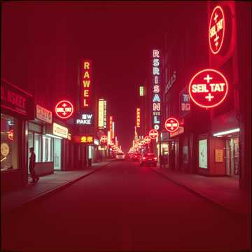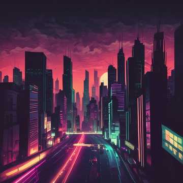 Keep the mood atmospheric, nostalgic, and immersive—perfect for a glowing skyline at midnight