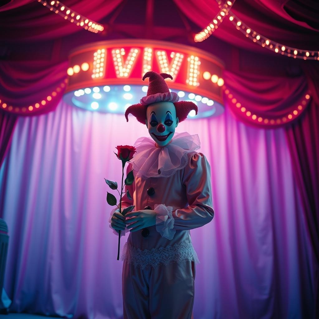 A high-energy Russian pop-rock track blending theatrical cabaret elements with modern synth-pop production, The song features a bright, up-tempo arrangement at 135 BPM in the key of G Major, The instrumentation consists of a driving electric guitar with light overdrive, a punchy four-on-the-floor drum kit, and prominent brass-style synthesizers that provide melodic stabs, A walking bassline provides a rhythmic foundation, The male vocals are delivered with a theatrical, expressive baritone quality, utilizing wide vibrato and dramatic dynamic shifts, The structure follows a Verse-Chorus-Verse-Chorus-Bridge-Chorus pattern, with a notable instrumental solo featuring a synthesized trumpet lead, Production is clean and polished, with a slight reverb on the vocals and a compressed, radio-ready mix