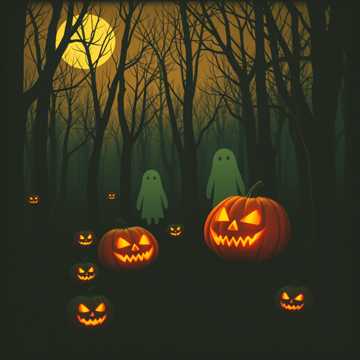 halloween, spooky synths, playful yet haunting vibe, retro horror, pulsing bassline, eerie theremin