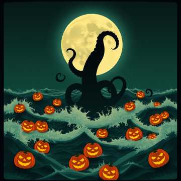 pulsing bassline, halloween, retro horror, playful yet haunting vibe, spooky synths, bassline, playful, eerie theremin