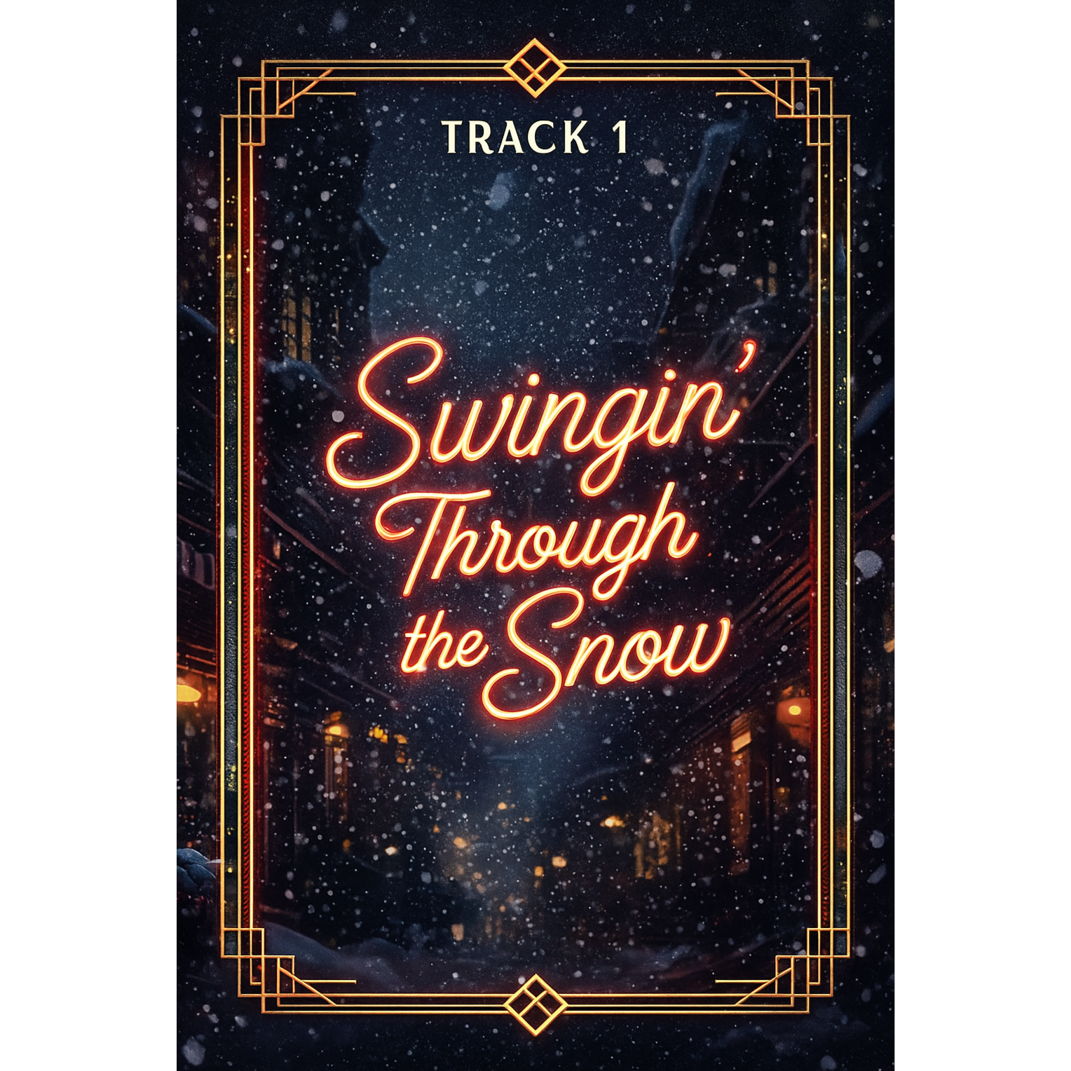 Upbeat electro-swing Christmas remix of the classic “Jingle Bells” melody at 126 BPM with a lively 4/4 swing groove, Use bright brass accents, playful clarinet lines, upright bass walking in a swing pattern, and gypsy jazz guitar on the upbeat, Add modern electronic elements like light sidechained beats, subtle glitch fills, and a crisp dance-floor bounce, Keep the vocals clean and traditional, singing only the well-known Verse 1 and Chorus of “Jingle Bells, ” Include a short instrumental swing break with brass and clarinet between choruses, The mood should feel like a cheerful winter night inside a 1920s holiday speakeasy—festive, friendly, and full of vintage-meets-modern charm