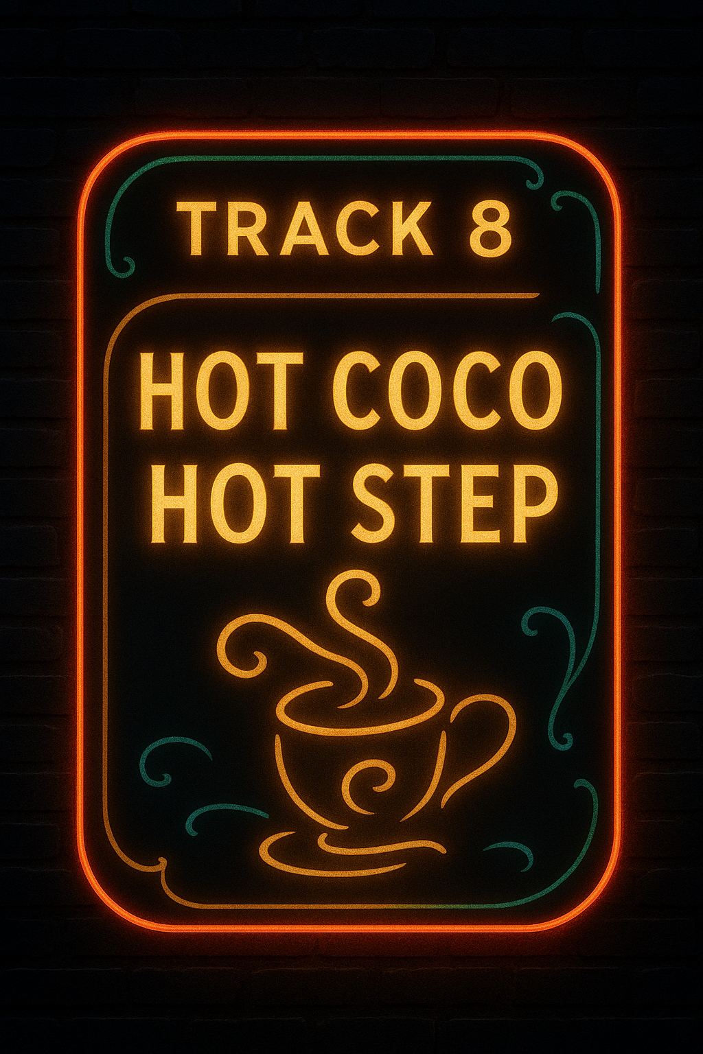 Upbeat electro-swing Christmas track at 126 BPM with a playful, cozy vibe, Mix lively swing rhythms with modern electronic energy, creating the feeling of dancing in a warm kitchen on a snowy night, Include a dedicated swing break section featuring a light, bouncy Charleston-style groove for dancers to shine, Vocals should be fun and rhythmic, celebrating the joy of hot cocoa, holiday warmth, and playful winter dancing, The overall mood is cheerful, sweet, and irresistibly toe-tapping