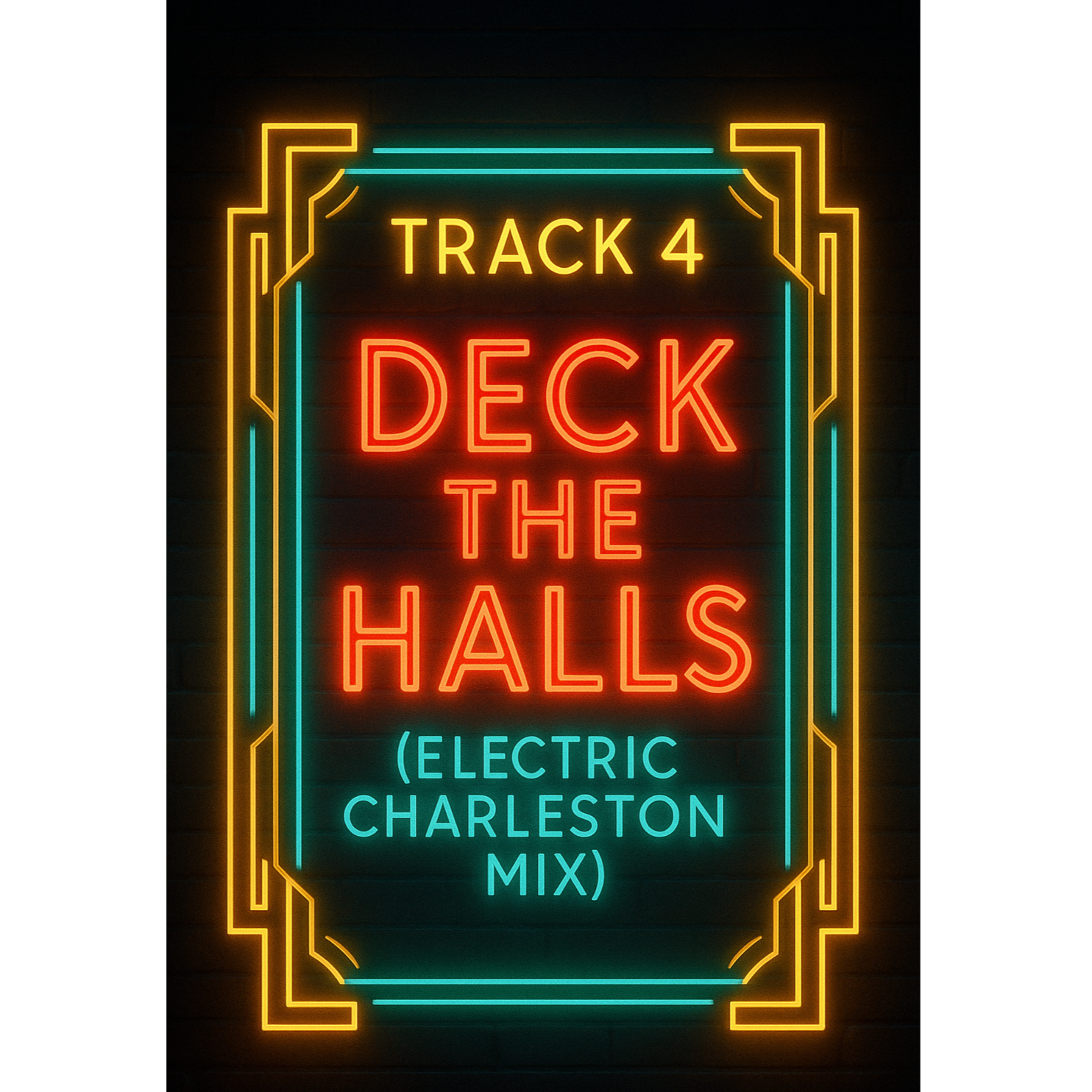 High-energy electro-swing remix of “Deck the Halls” at 132 BPM with a strong Charleston rhythm and upbeat 4/4 swing groove, Use bright trumpets, crisp sax riffs, lively clarinet runs, and bold trombone accents, Add gypsy jazz guitar on the upbeat and vintage ragtime-style piano patterns to drive the Charleston feel, Blend in modern electronic elements like sidechained kicks, glitchy build-ups, and energetic drops that hit between traditional phrases of the melody, The vocals, if used, should keep the classic “Deck the Halls” lyrics clean and recognizable while adding a festive, speakeasy-style cadence, The track should feel like a roaring 1920s holiday dance party—fizzy, joyful, and full of vintage-meets-modern flair