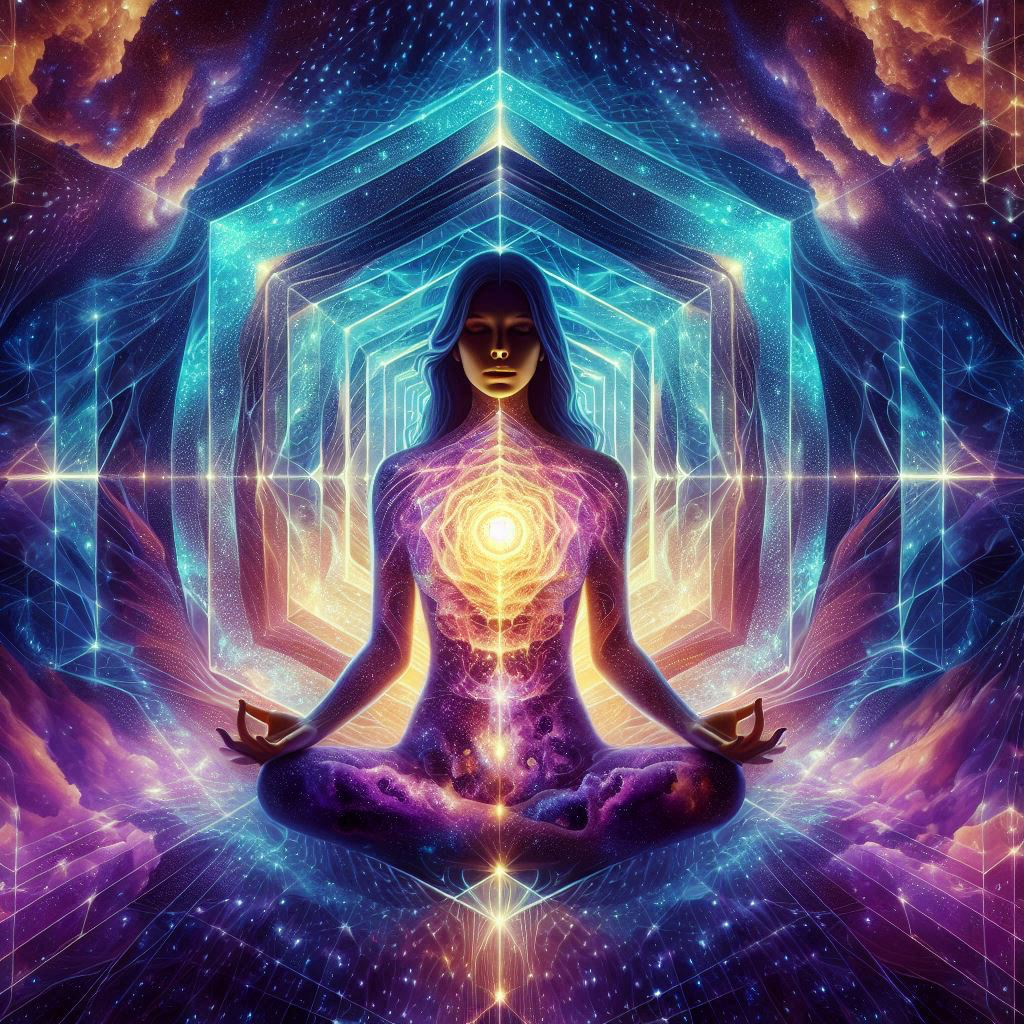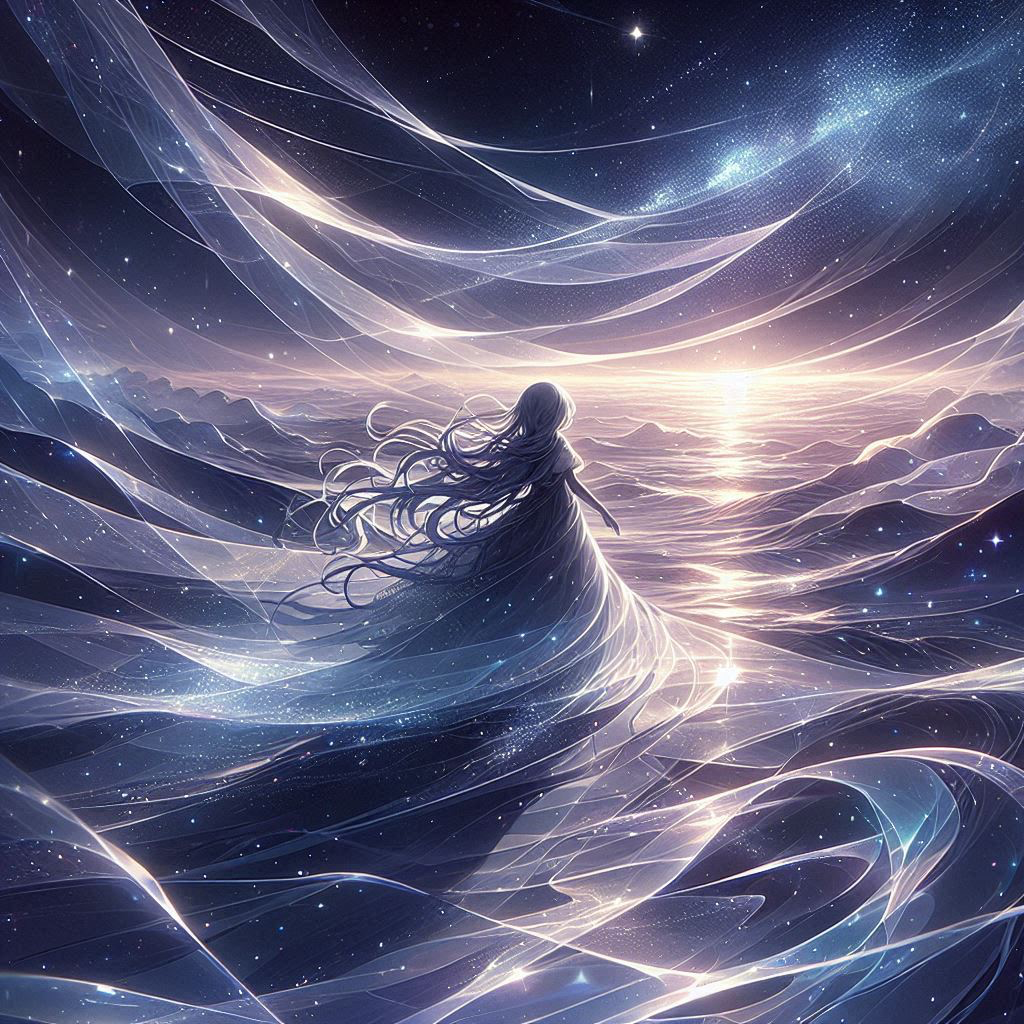 Progressive psytrance, ethereal, percussion, rhythmic flow, immersive soundscape, psybient, mysticism, bassline, granular textures, groovy, spatially dynamic, stars sfx