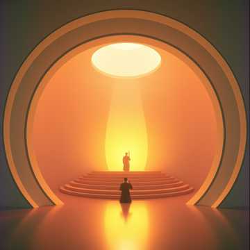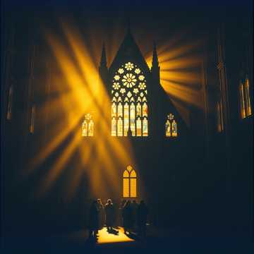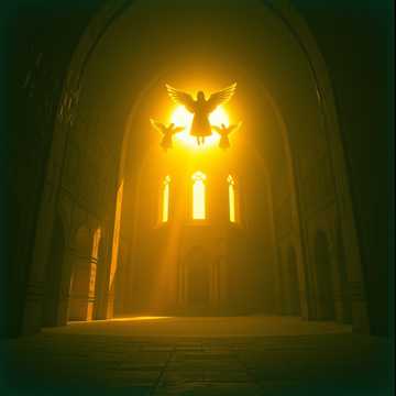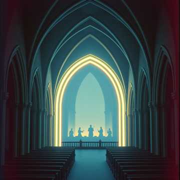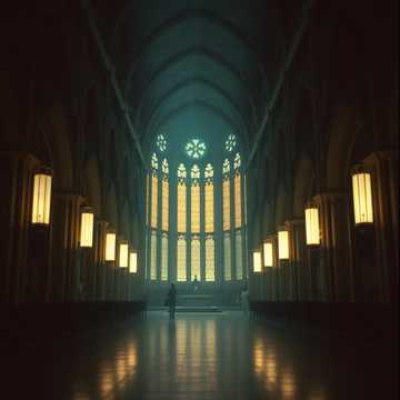Slow-tempo Downtempo, 100 BPM, heavy electronic breakbeat, male Gregorian liturgical chants, ethereal whispered female vocals, breathy wooden flute leads, deep cinematic synth pads, cathedral reverb, atmospheric, mysterious, sacred and sensual, The kick drum is deep and punchy, while the snare has a crisp, processed "crack" common in early 90s electronic music, Combines male liturgical choral chanting in Latin with breathy, whispered female vocals