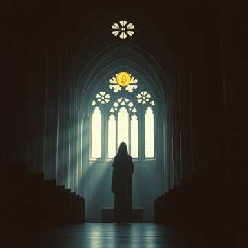 Slow-tempo Downtempo, 95 BPM, heavy electronic breakbeat, male Gregorian liturgical chants, ethereal whispered female vocals, breathy wooden flute leads, deep cinematic synth pads, cathedral reverb, atmospheric, mysterious, sacred and sensual, The kick drum is deep and punchy, while the snare has a crisp, processed "crack" common in early 90s electronic music, Combines male liturgical choral chanting in Latin with breathy, whispered female vocals