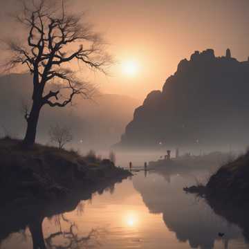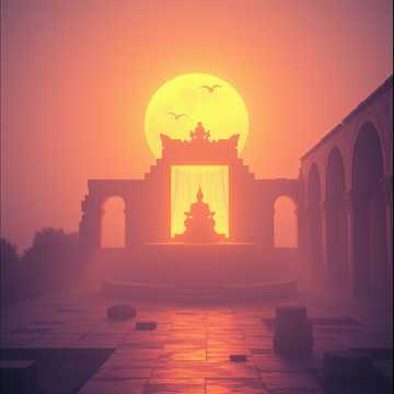 A haunting Shakuhachi flute (or pan flute) provides the lead melodic hook, often using pitch bends and airy textures, Deep, expansive synthesizer pads with heavy reverb create a cathedral-like spatial depth, Long, atmospheric buildup with church bells and ambient noise