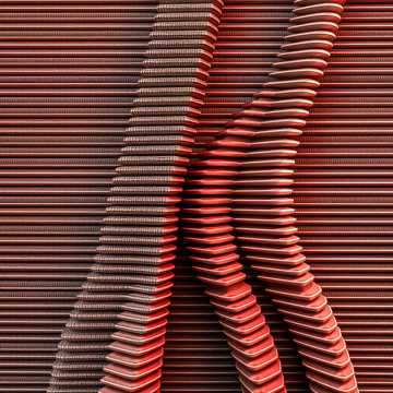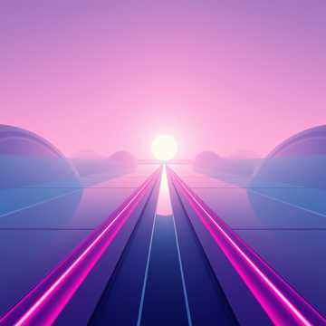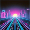 Neon-lit sunset horizon over a glitchy retro-future highway; deep magentas, vivid pinks, and cool blues streak across angular high-tech cityscapes, Chromatic city structures fade into light as a glowing orb hovers over the horizon, with multiple rail paths converging to a single vanishing point, A prismatic rail of color stretches infinitely forward, evoking motion without chaos—emphasizing unity, symmetry, and cohesion under radiant acceleration, Sonically, this instrumental synth-rock / glitch-tinged track at 82 BPM builds tension through multiple repeating motifs that phase against each other without disruption, No vocals, no drops, no climax—just tightly interwoven structures that remain entrained under a single groove, The drums remain locked in a deep pocket—steady kick, confident snare, and subtly varied hi-hats, Bass holds the groove in a consistent, circular rail line, Guitars and synths shimmer with metric tension, producing controlled multiplicity that never breaks apart