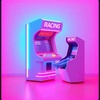 Neon-saturated night-drive energy with electric blue groove control and golden-red articulation clarity, balanced retro-futurist arcade synth-rock foundation, dominant rail-driven kick with tight bass propulsion, bold arcade-inspired lead hook placed clearly in the melodic foreground with sharp transient attack and brief dynamic contrast before entry, supporting synth textures subtly reduced during hook sections to preserve clarity and authority, subtle harmonic color shifts adding emotional lift without clutter, tight focused forward pulse, steady high-energy propulsion, 124 BPM